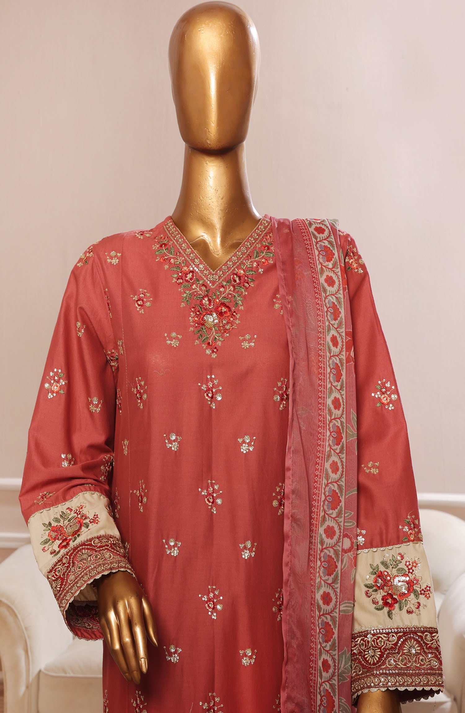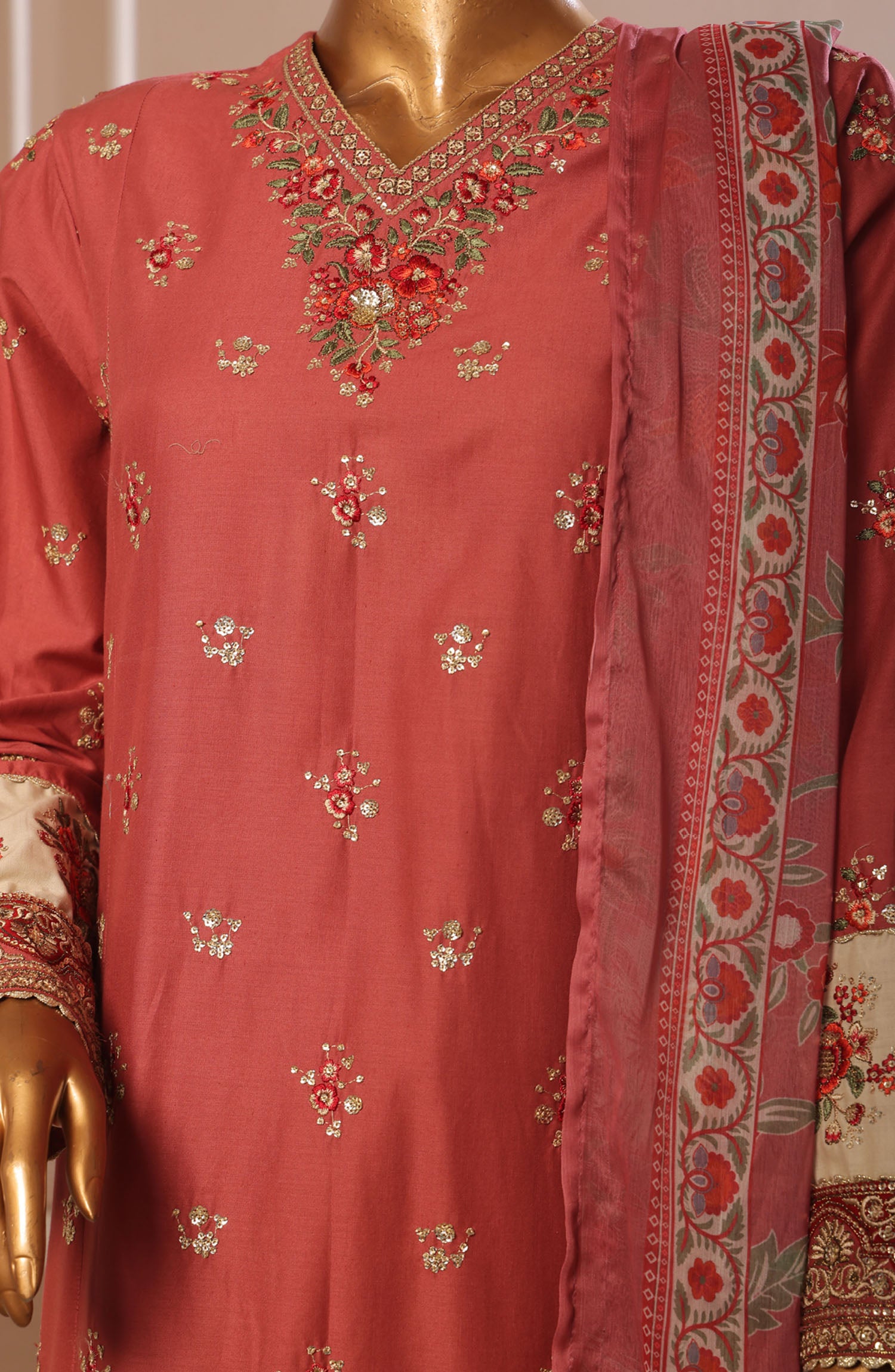 Bin Saeed Embroidered Cotton Stitched 3 Piece Suit - D-07 - BS25CE3PC - Red - Summer Collection