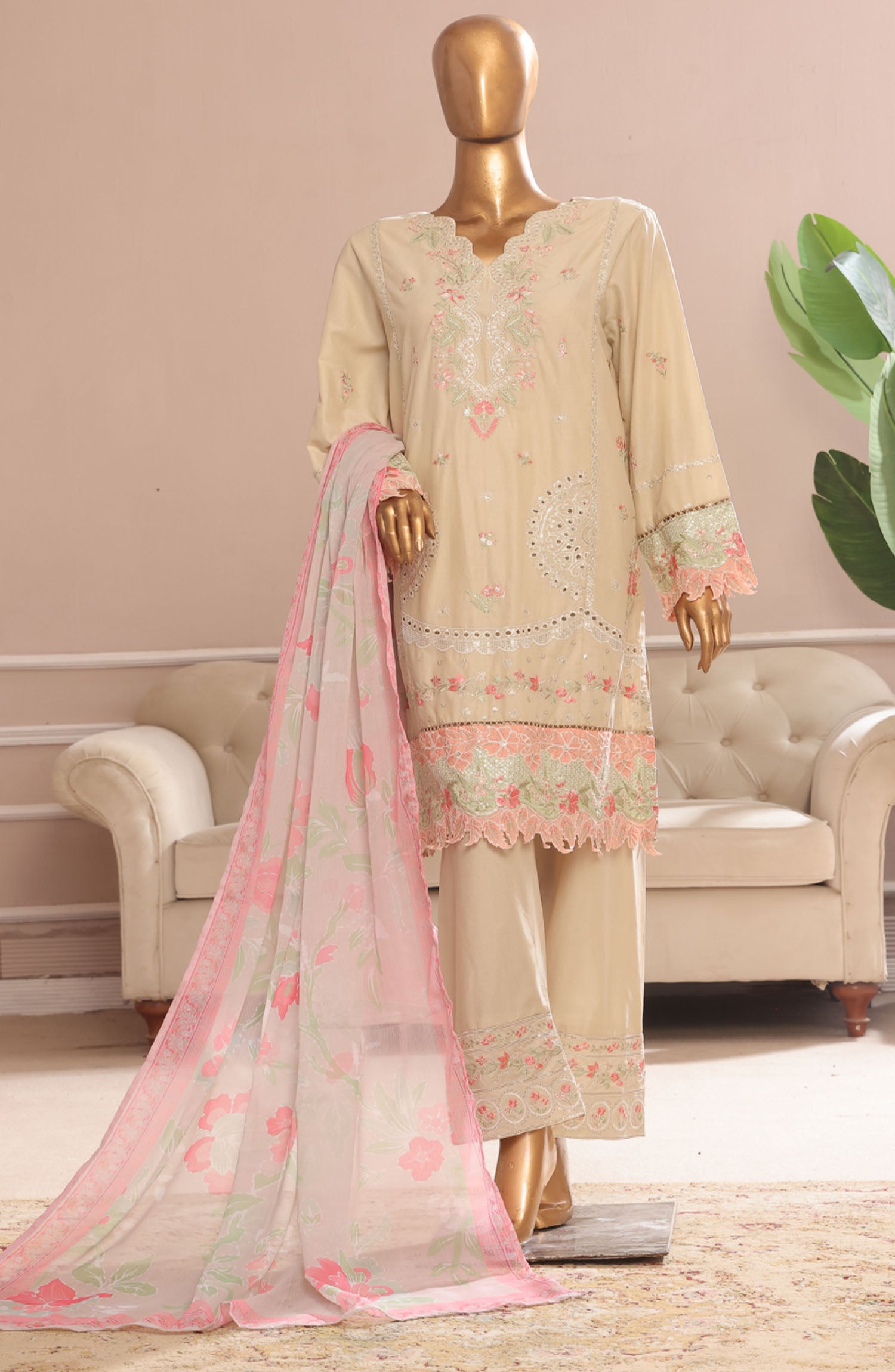 The standard style comes as a long-sleeved kameez with dupatta and trouser/shawlar.