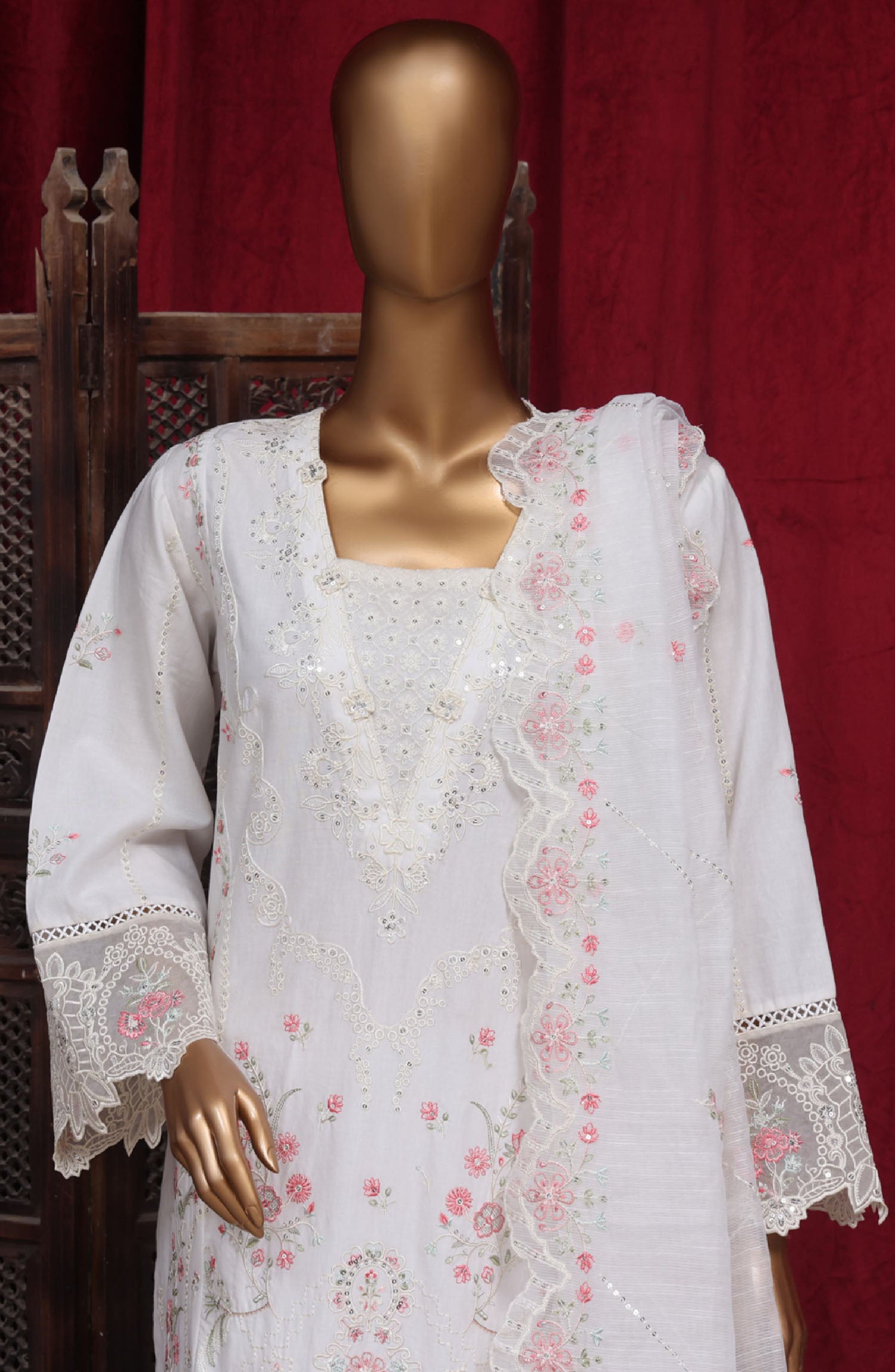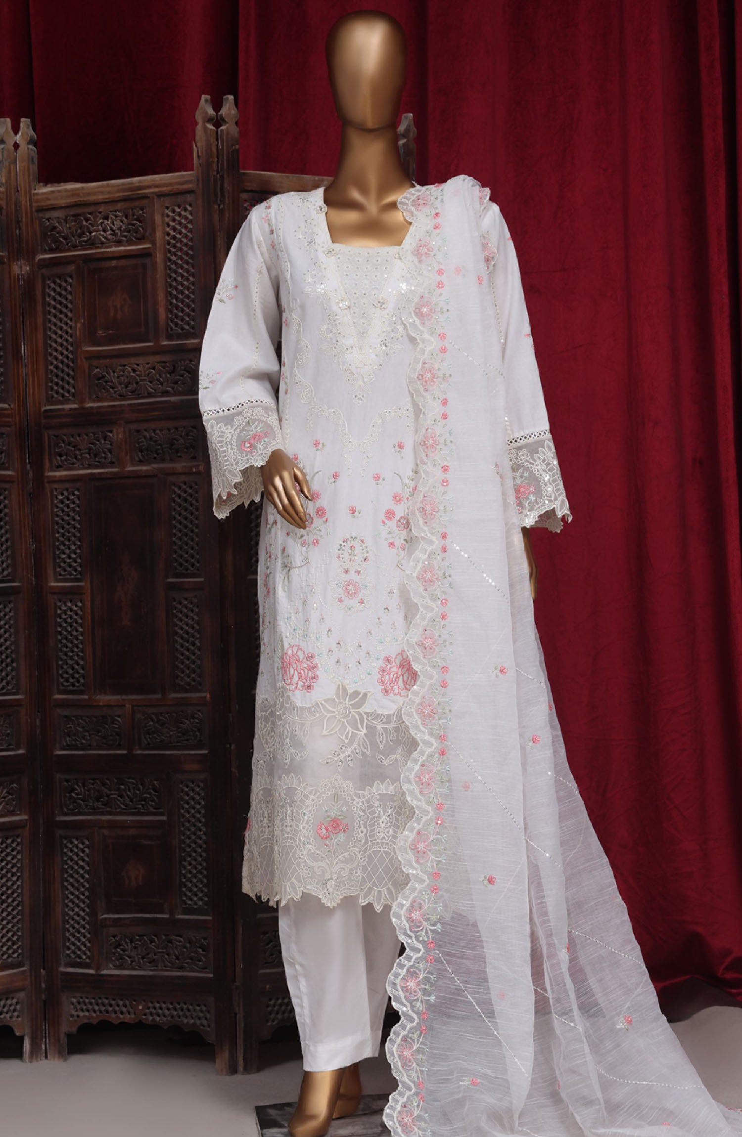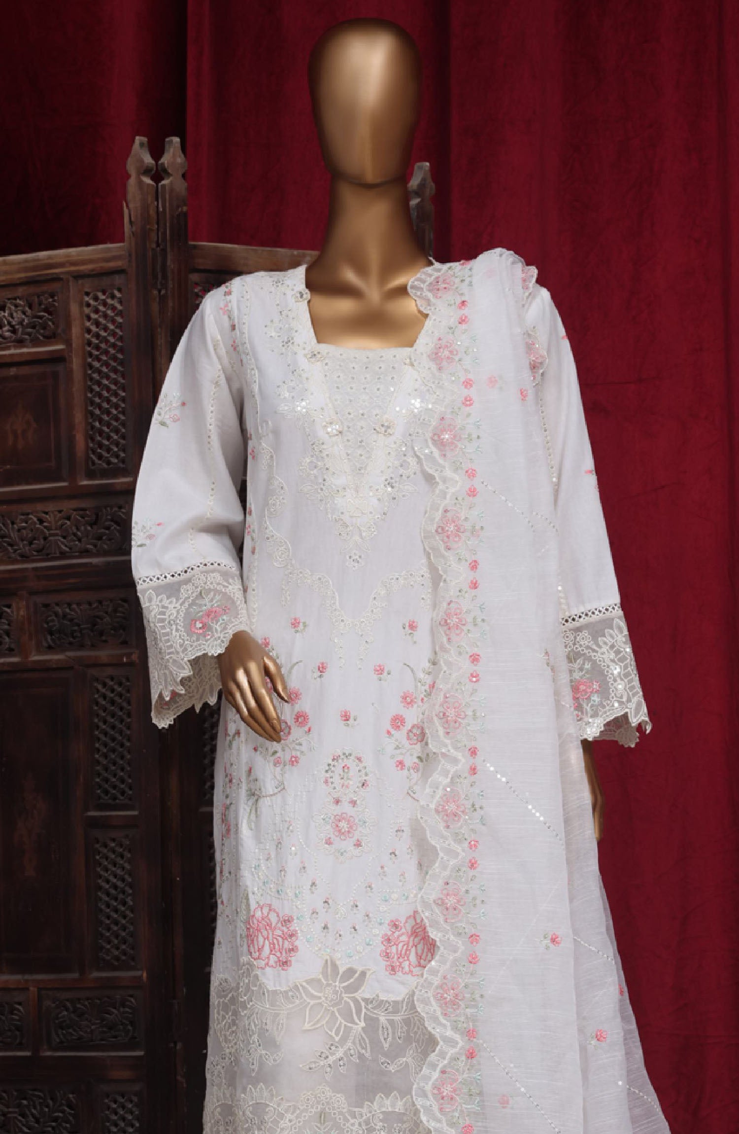 Home Bin Saeed Embroidered Cotton Stitched 3 Piece Suit - LF-100 - BS25PCV3 - White - Summer Collection
