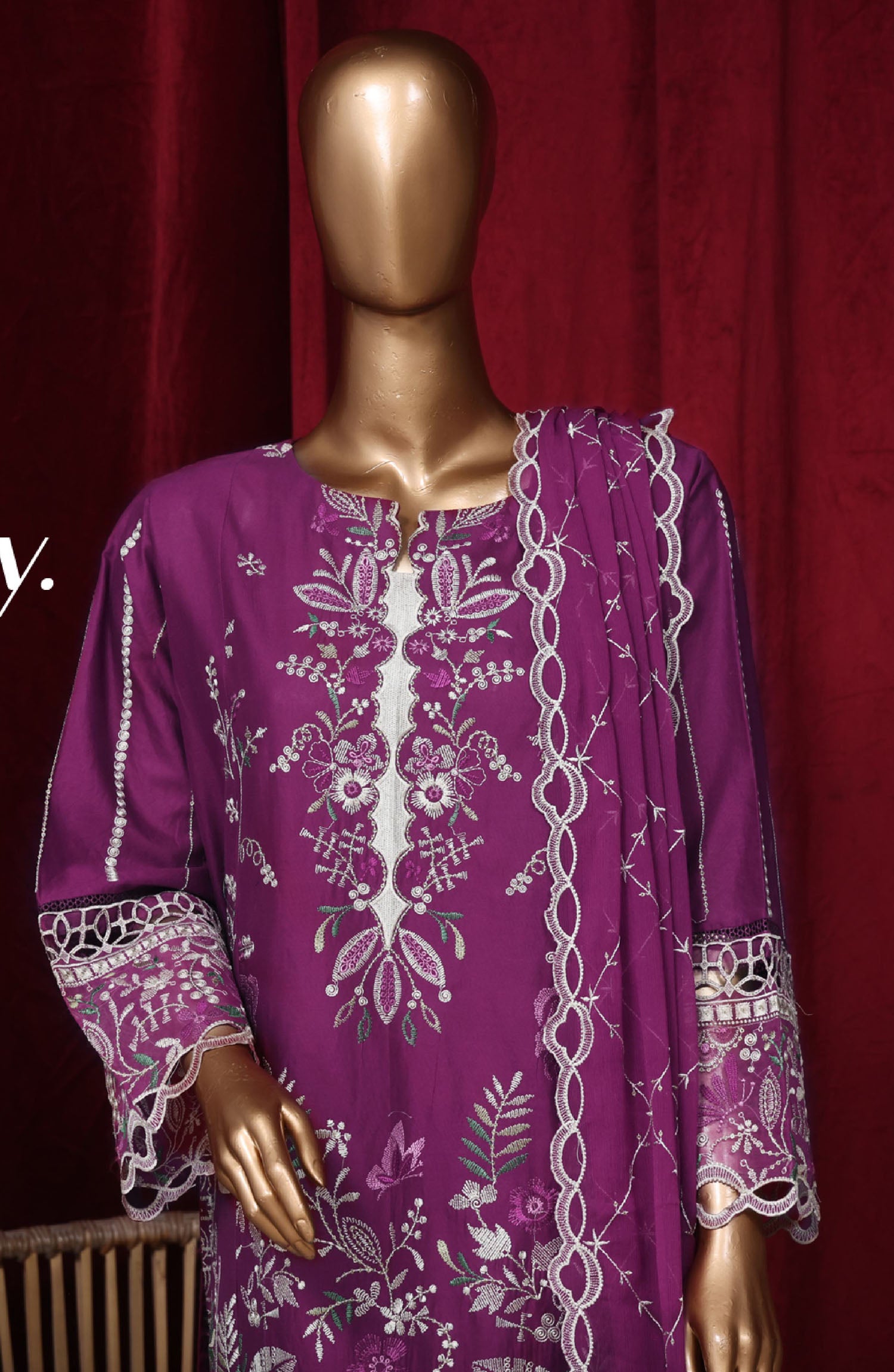 Home Bin Saeed Embroidered Cotton Stitched 3 Piece Suit - LF-39 - BS25PCV3 - Purple - Summer Collection