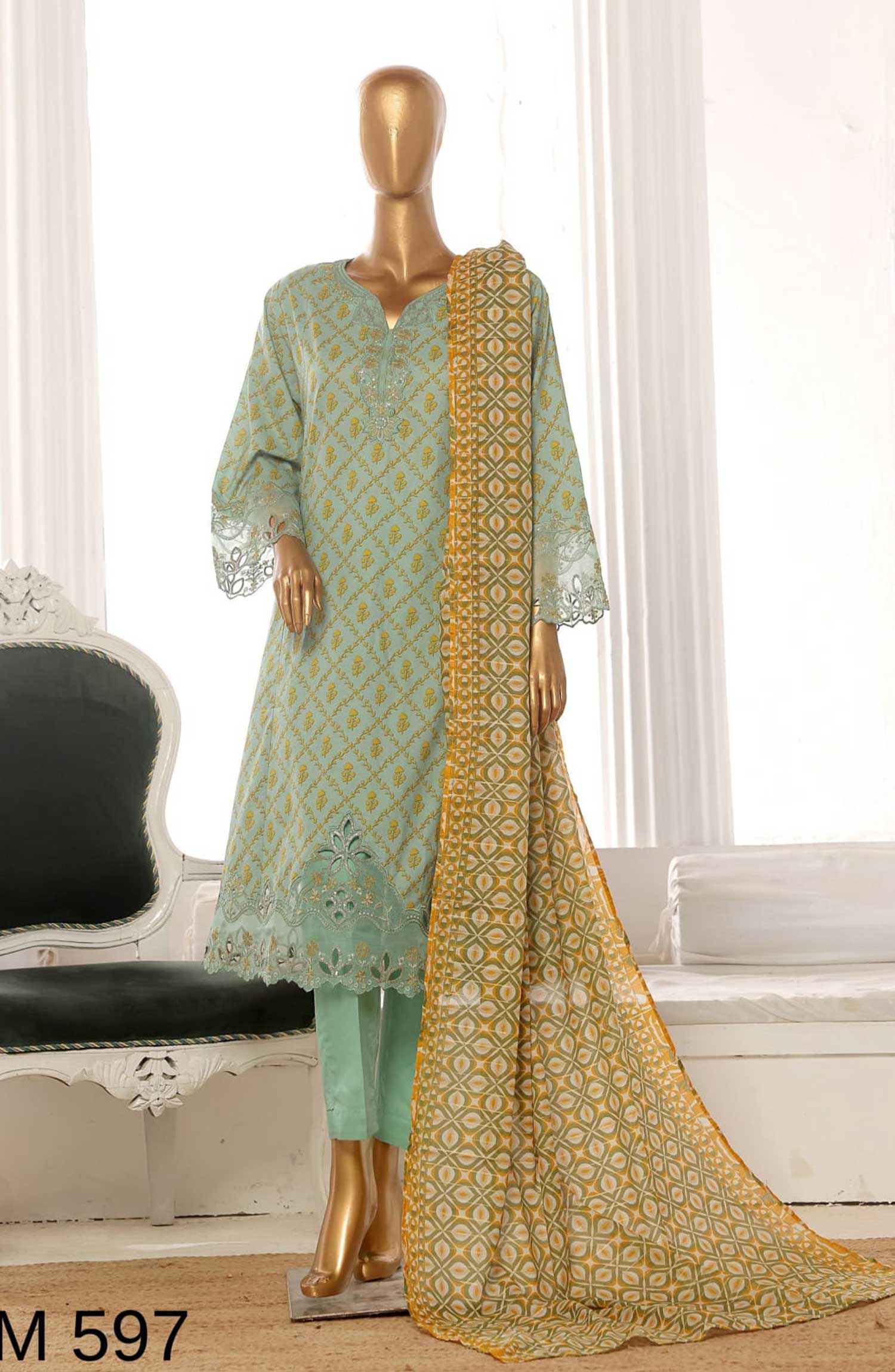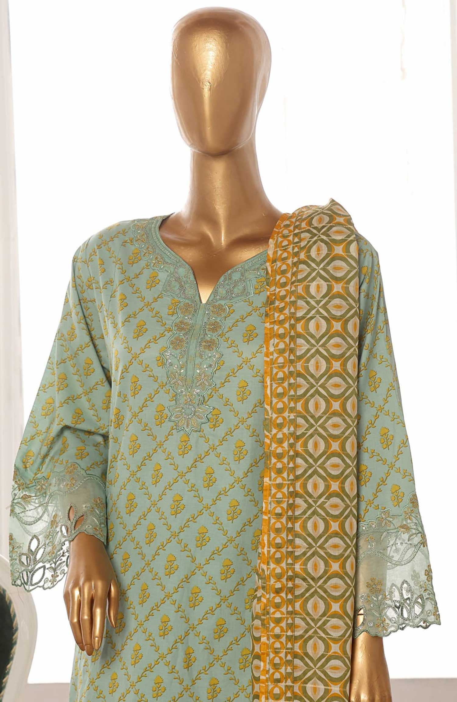 Bin Saeed Embroidered Lawn Frock Stitched 3 Piece - SM 597 - BS25LF - Green - Summer Collection