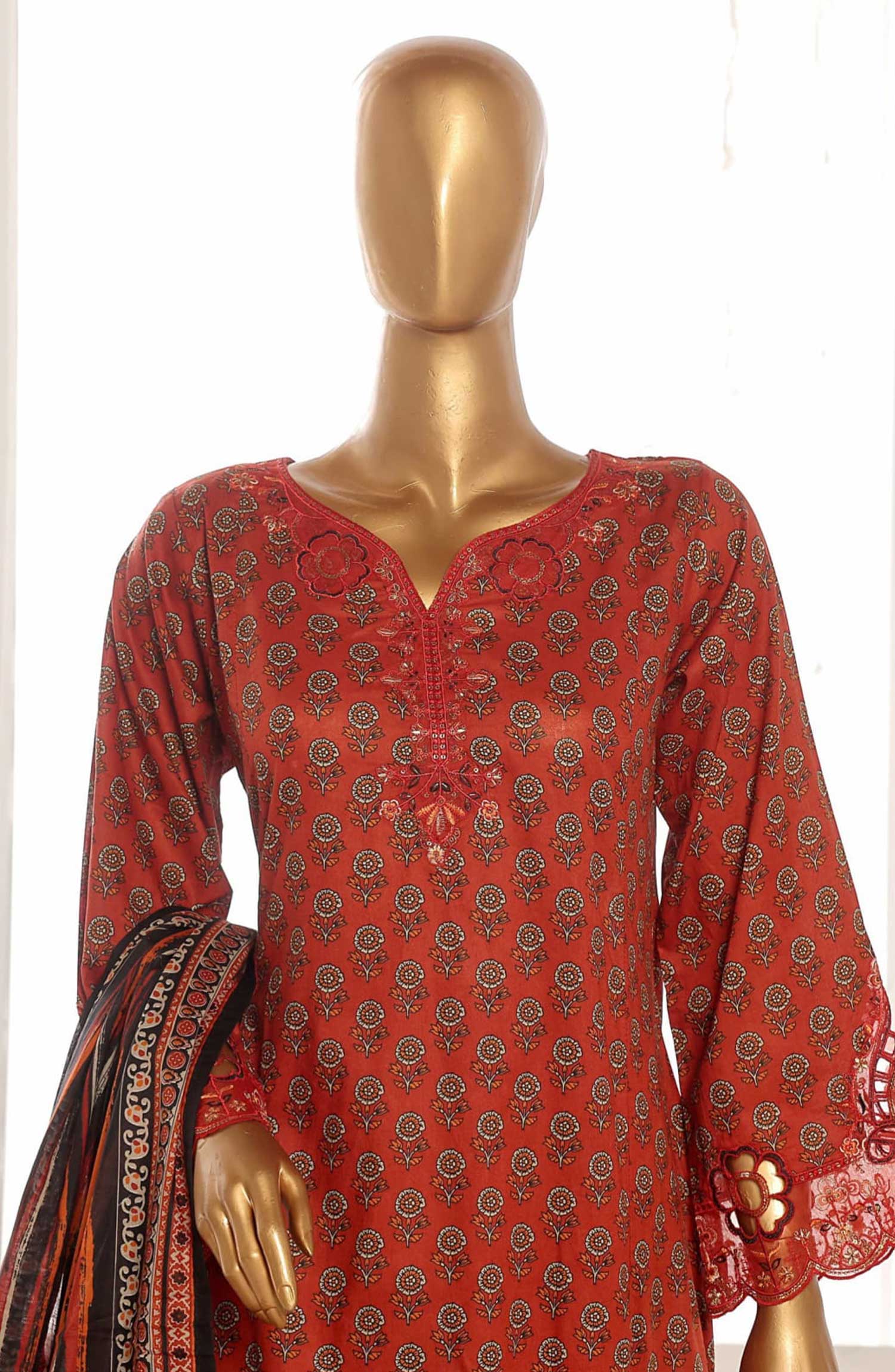 Home Bin Saeed Embroidered Lawn Frock Stitched 3 Piece - SM 601 - BS25LF - Red - Summer Collection