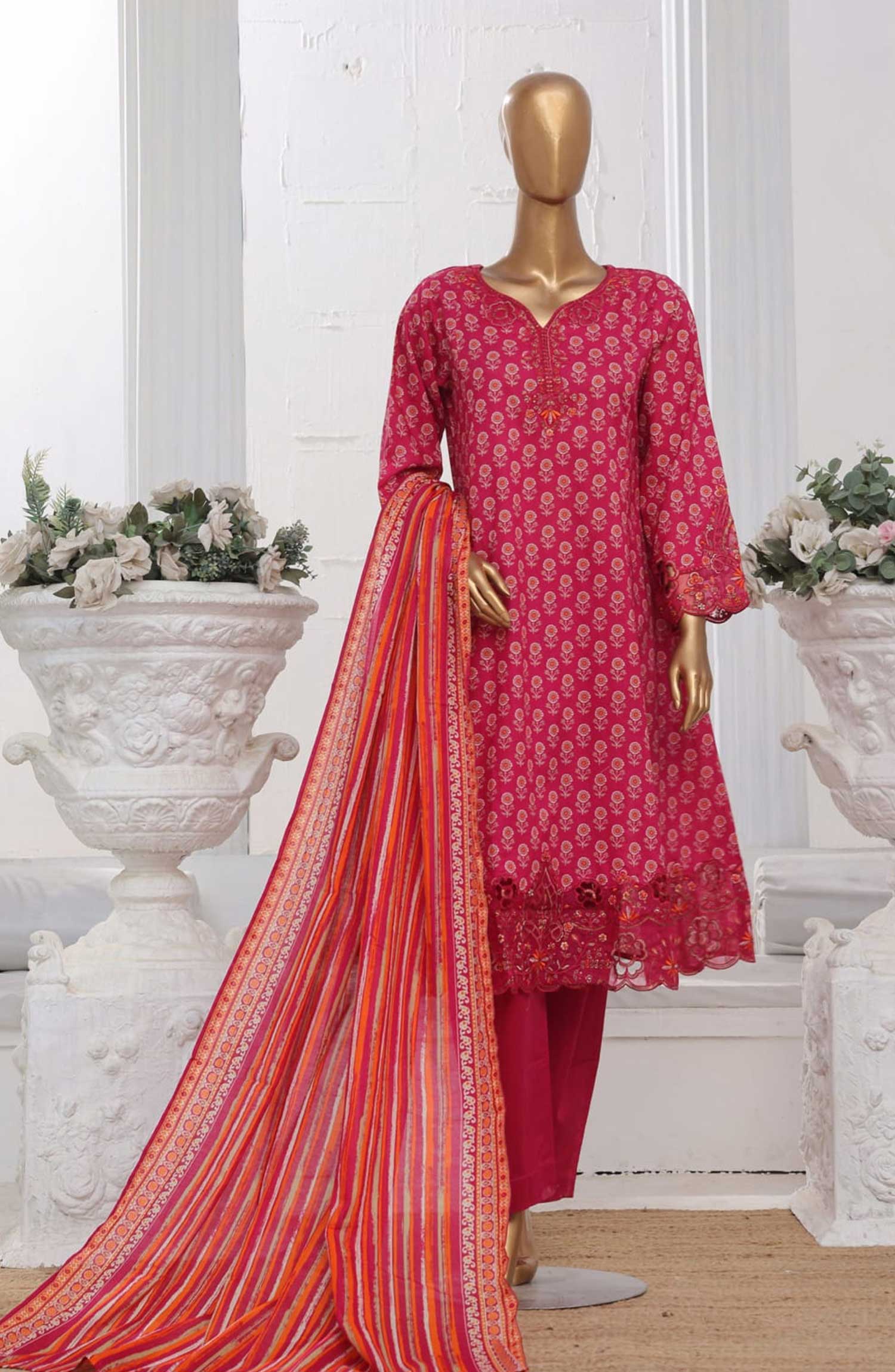 Home Bin Saeed Embroidered Lawn Frock Stitched 3 Piece - SM 602 - BS25LF - Pink - Summer Collection