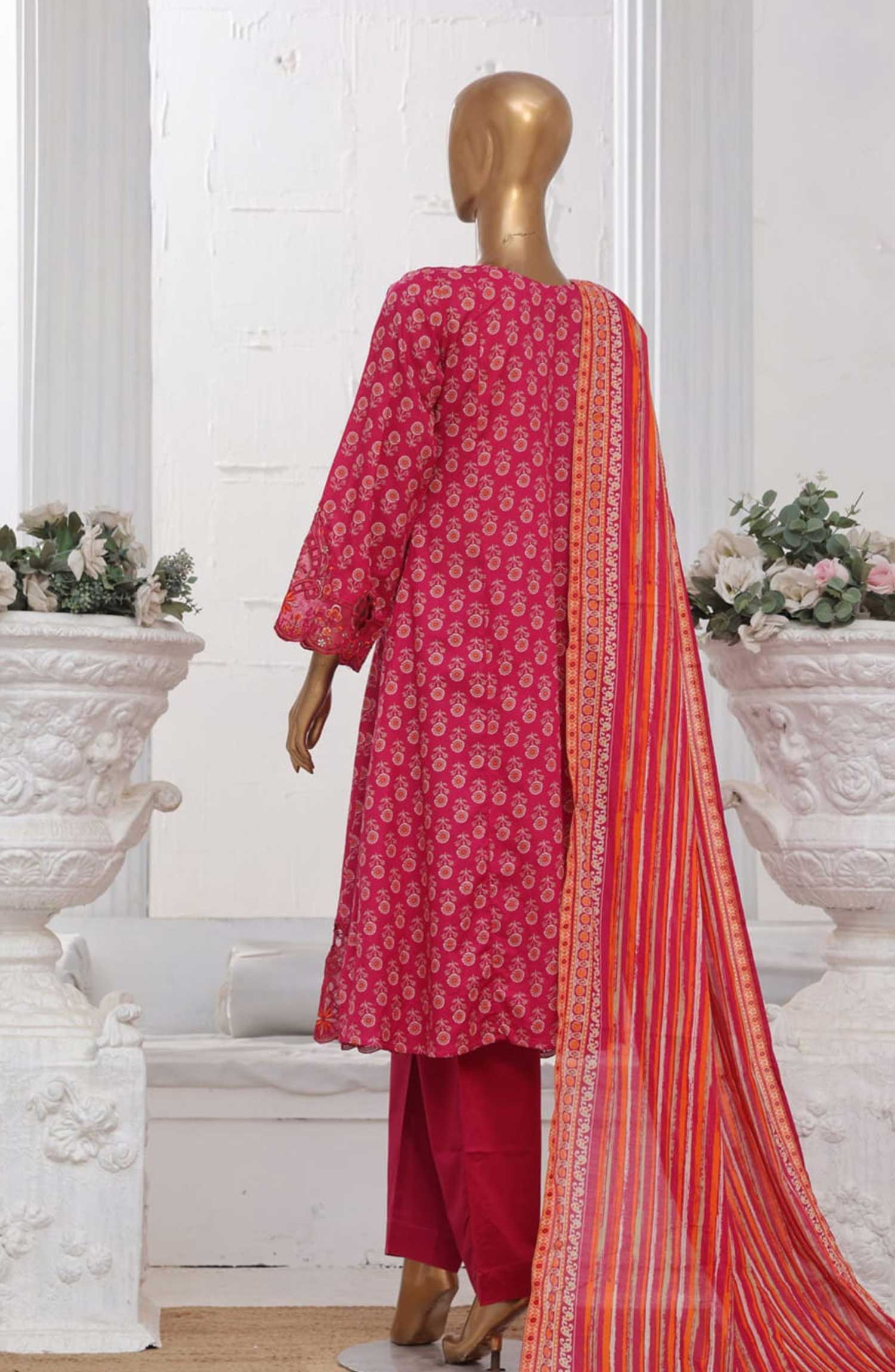 Bin Saeed Embroidered Lawn Frock Stitched 3 Piece - SM 602 - BS25LF - Pink - Summer Collection
