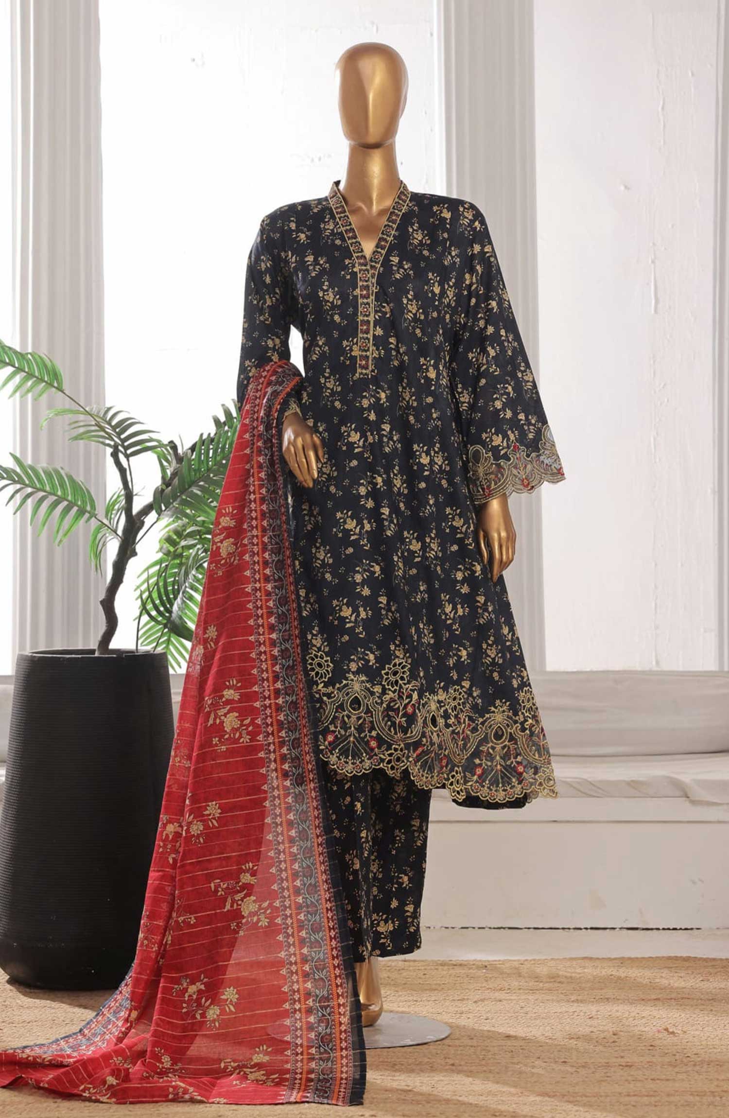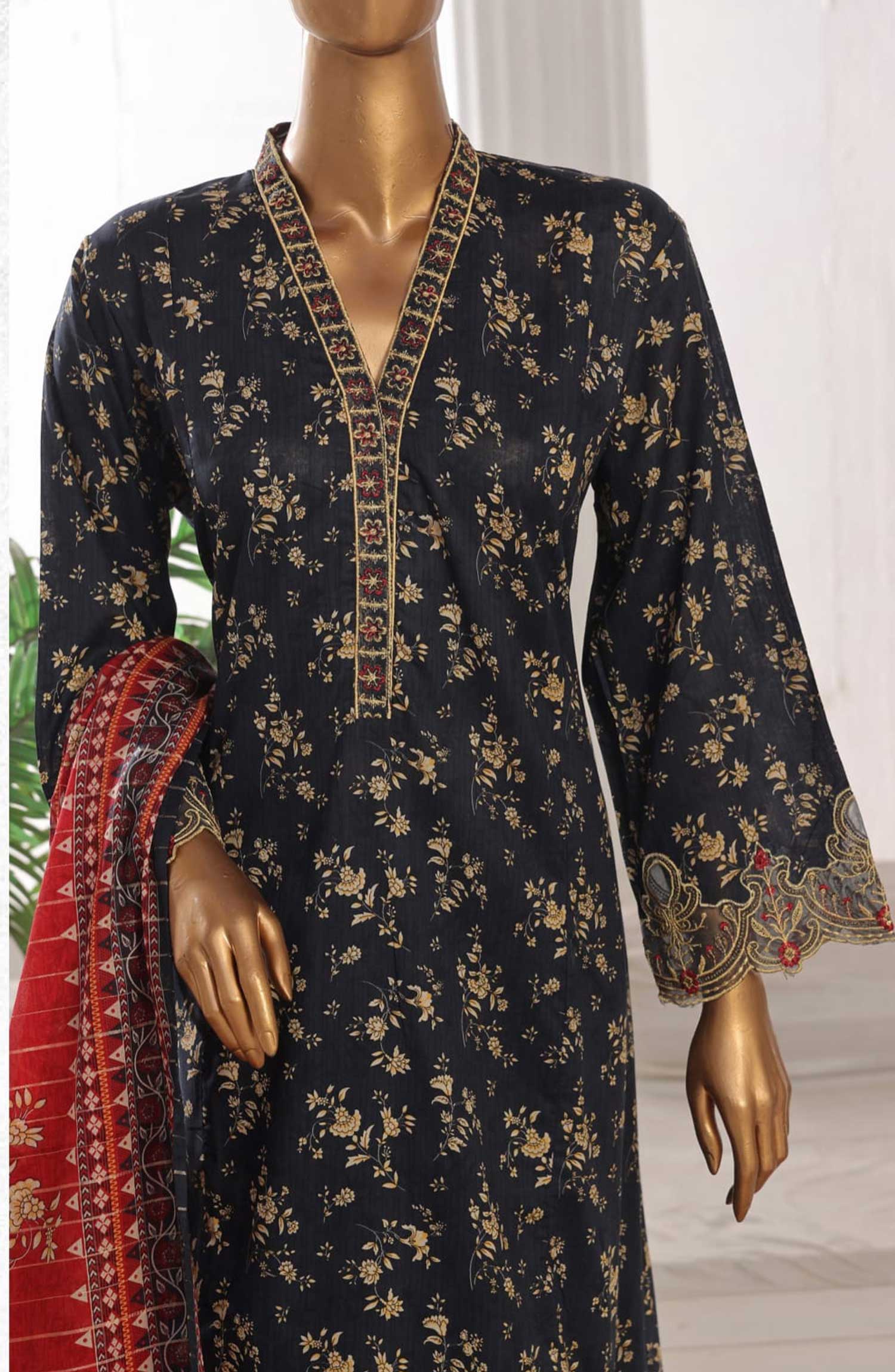 Modest Embroidered Khaddar Stitched 3 Piece Suit - 9990-Blk - MOD25WNT - Black - Winter Collection