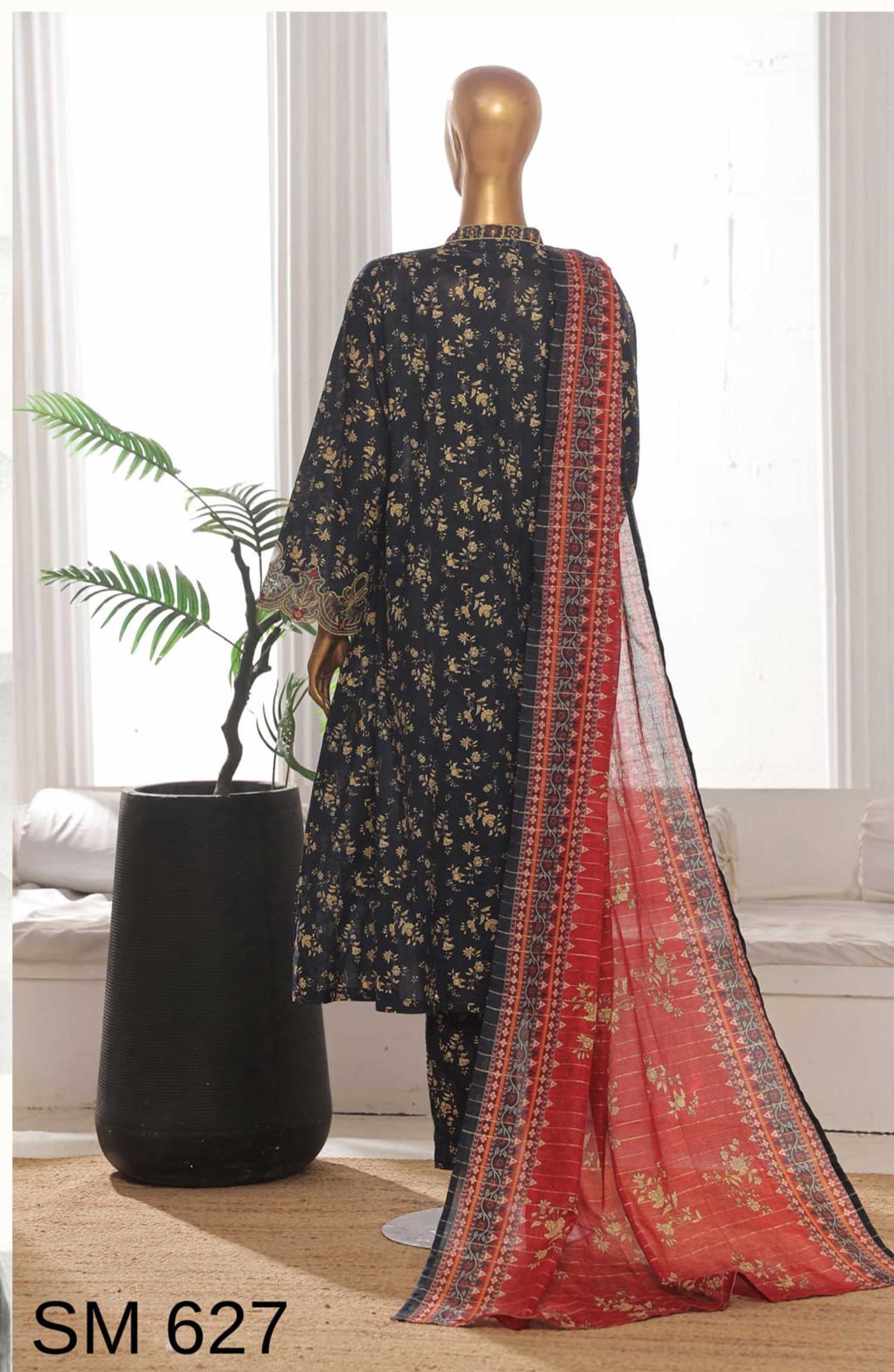 Bin Saeed Embroidered Lawn Frock Stitched 3 Piece - SM 627 - BS25LF - Dark Blue - Summer Collection