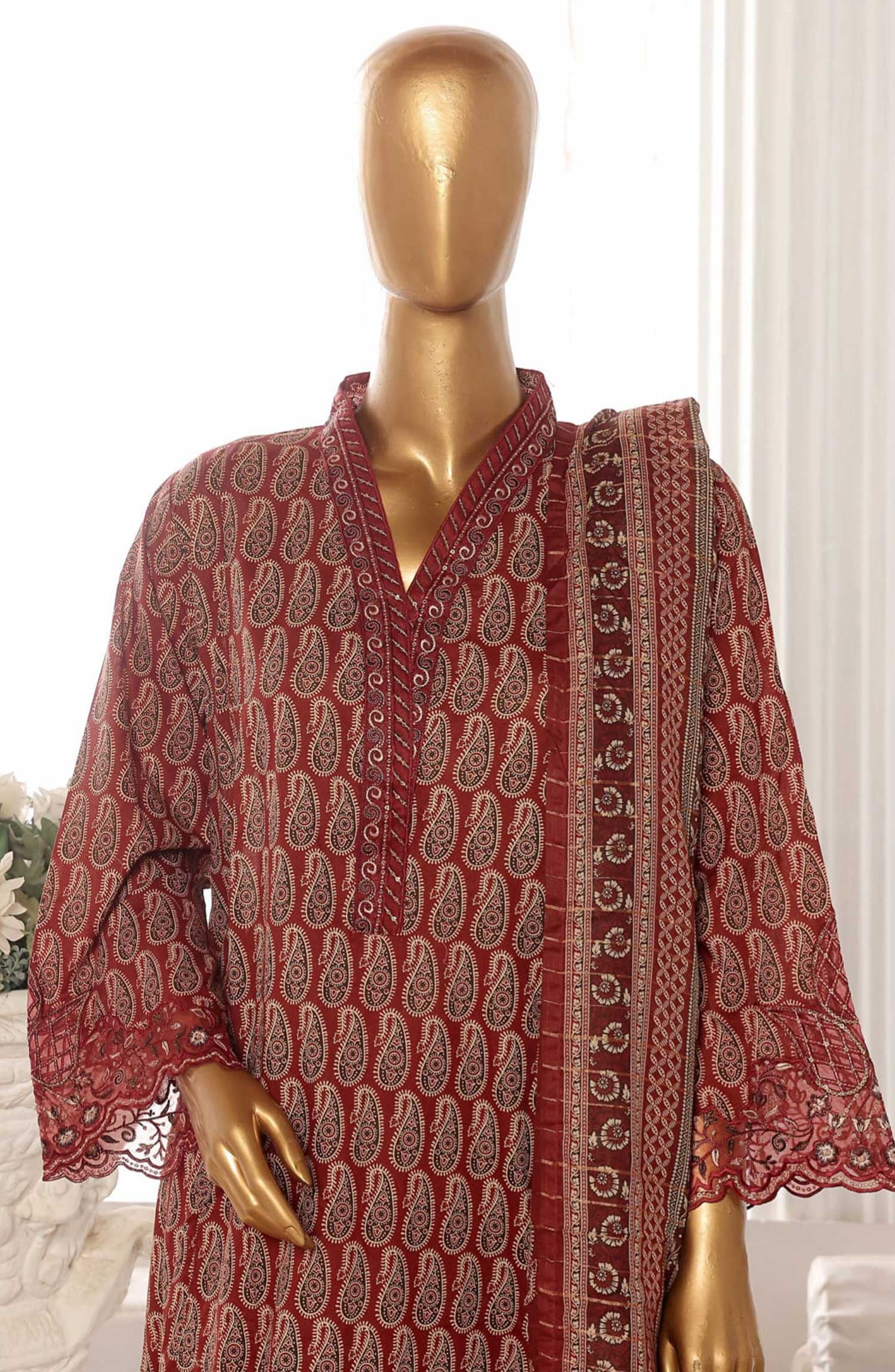 Home Bin Saeed Embroidered Lawn Frock Stitched 3 Piece - SM 631 - BS25LF - Maroon - Summer Collection