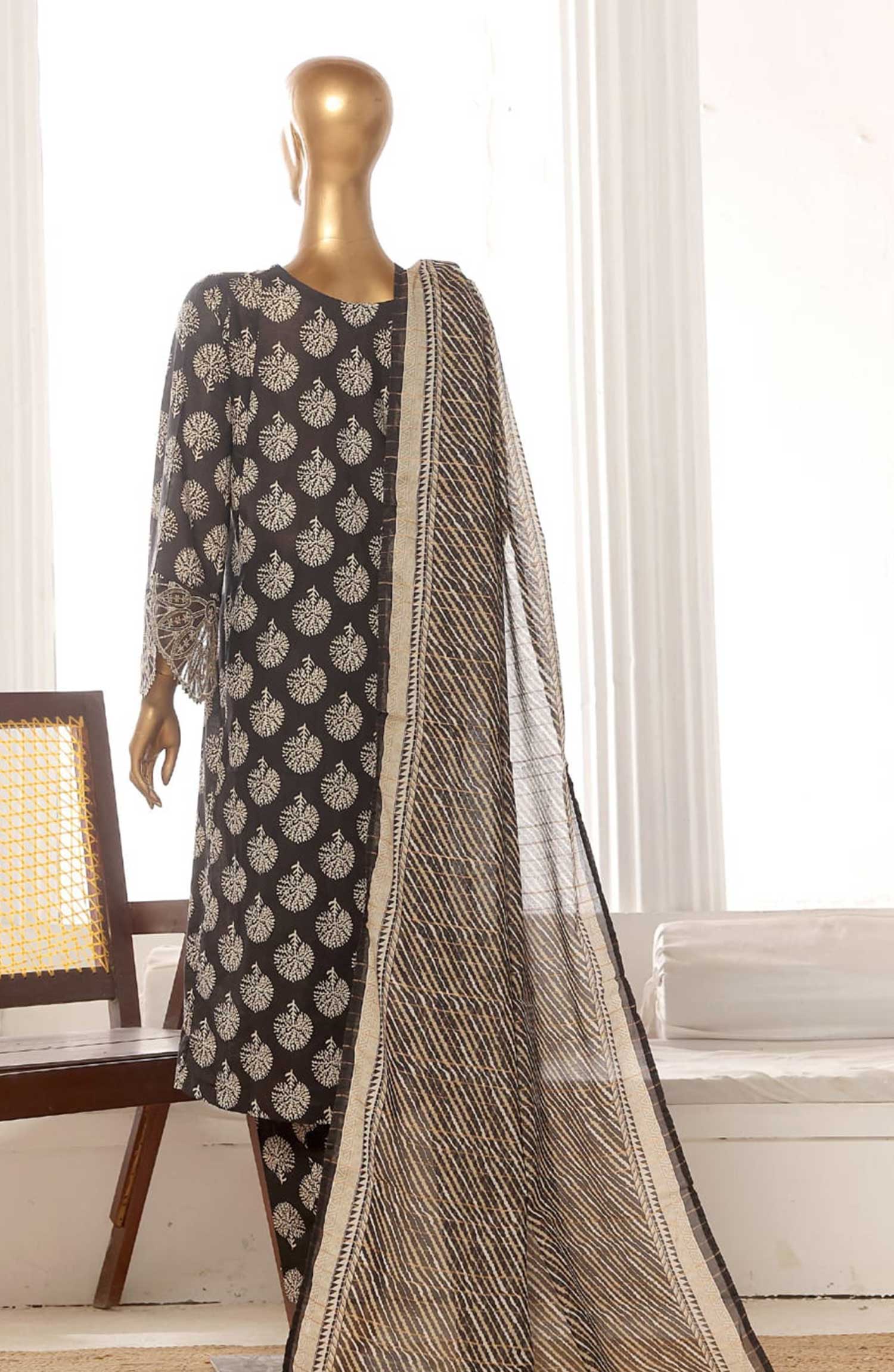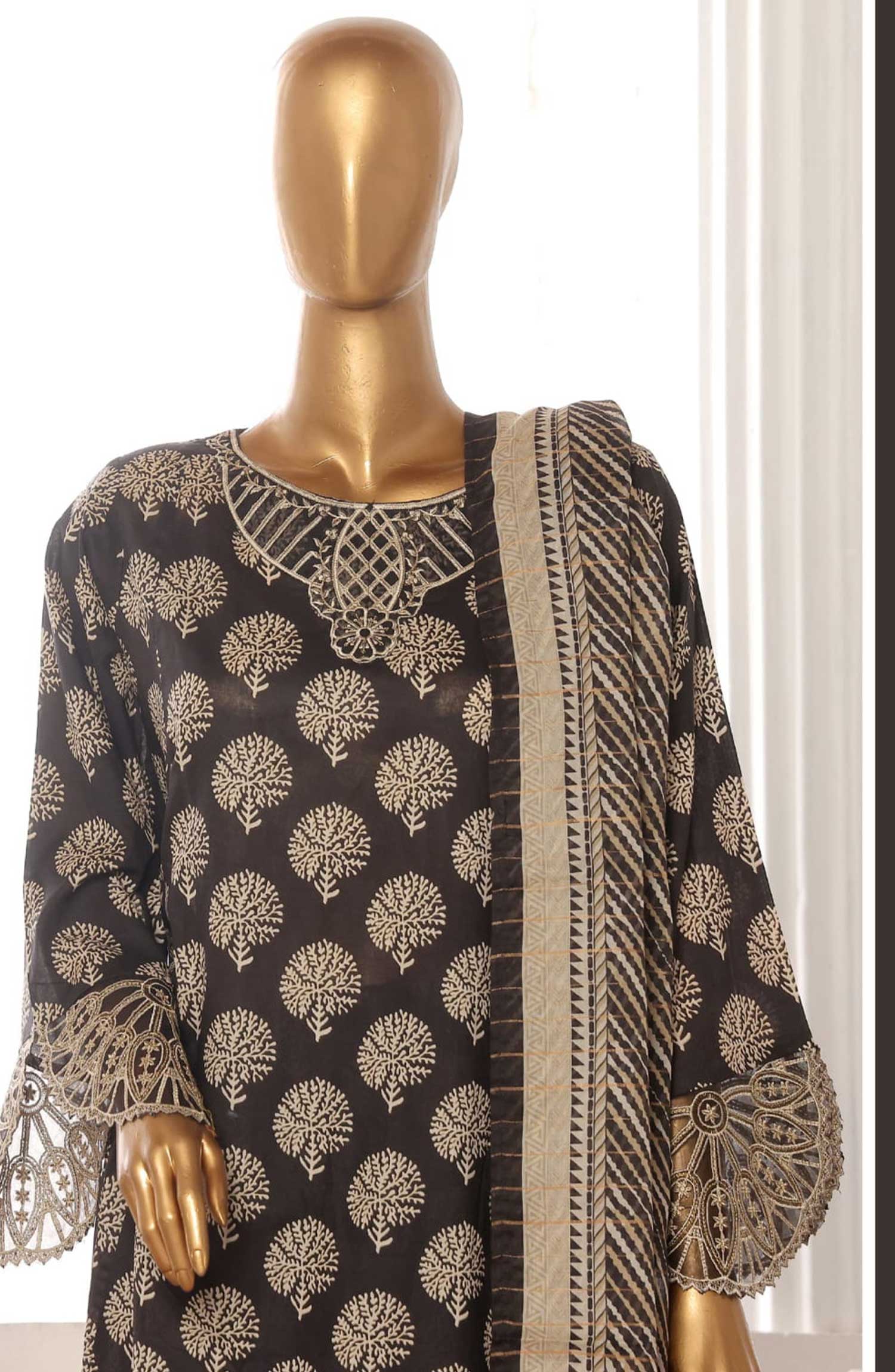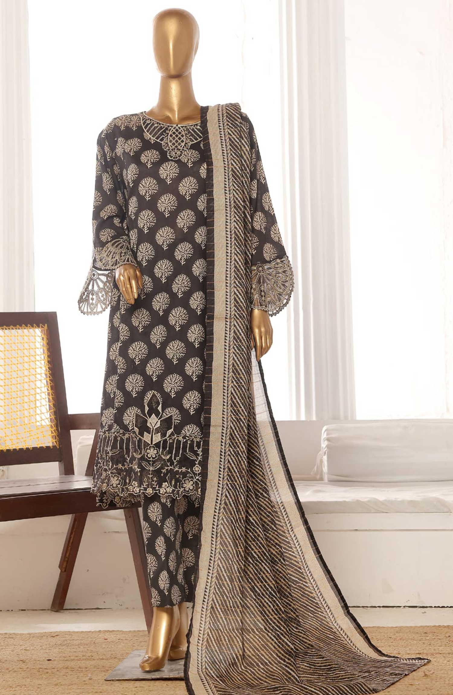 Home Bin Saeed Embroidered Lawn Frock Stitched 3 Piece - SM 634 - BS25LF - Black - Summer Collection