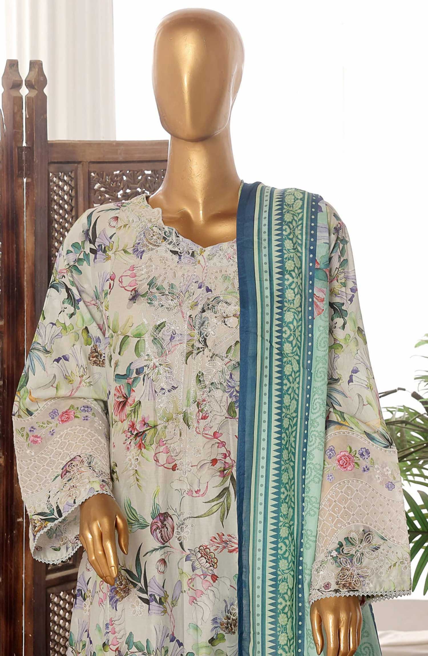 Home Bin Saeed Embroidered Lawn Frock Stitched 3 Piece - SM 747 - BS25LF - White - Summer Collection