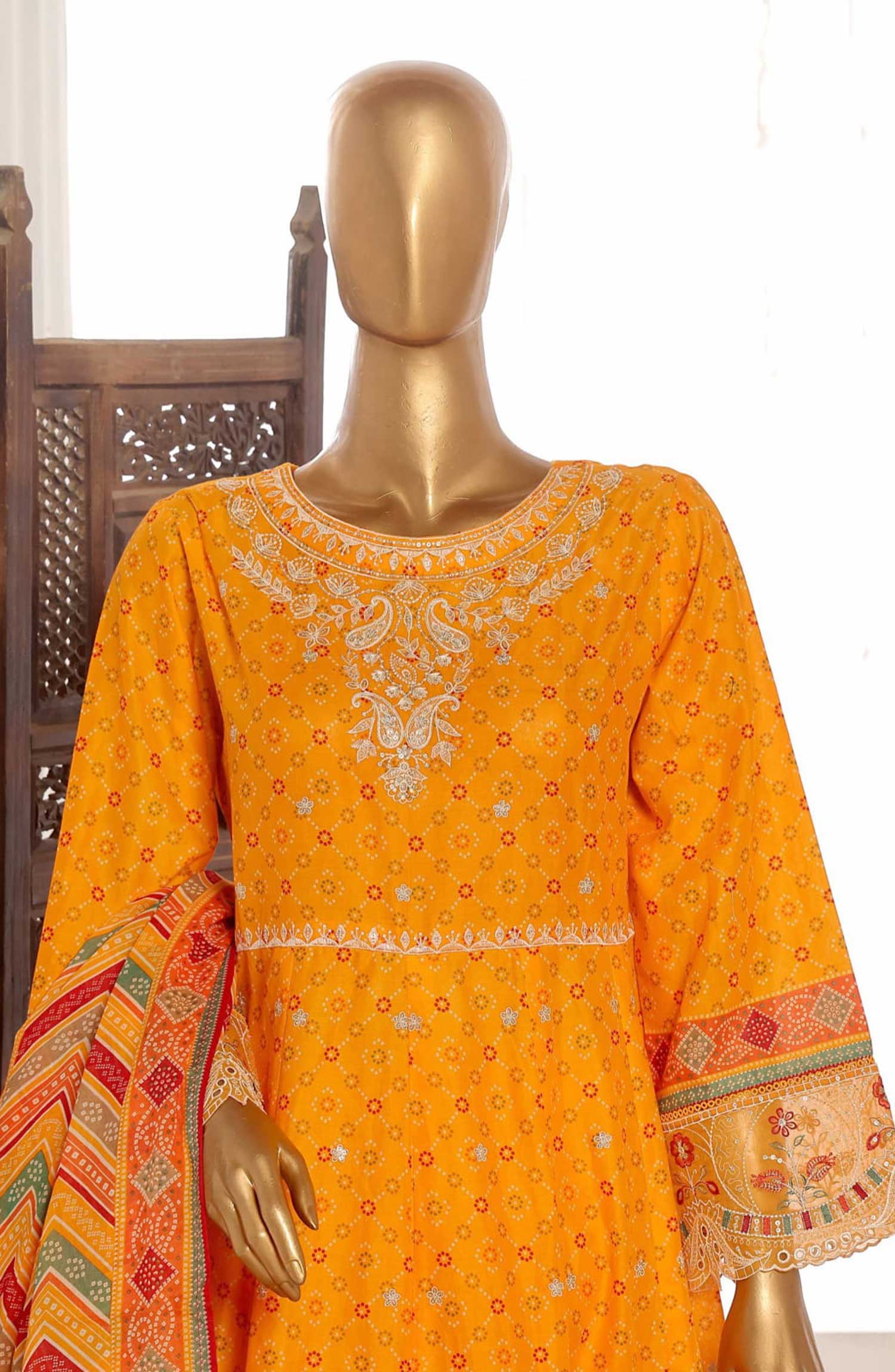 Bin Saeed Embroidered Lawn Frock Stitched 3 Piece - SM 791 - BS25LF - Yellow - Summer Collection