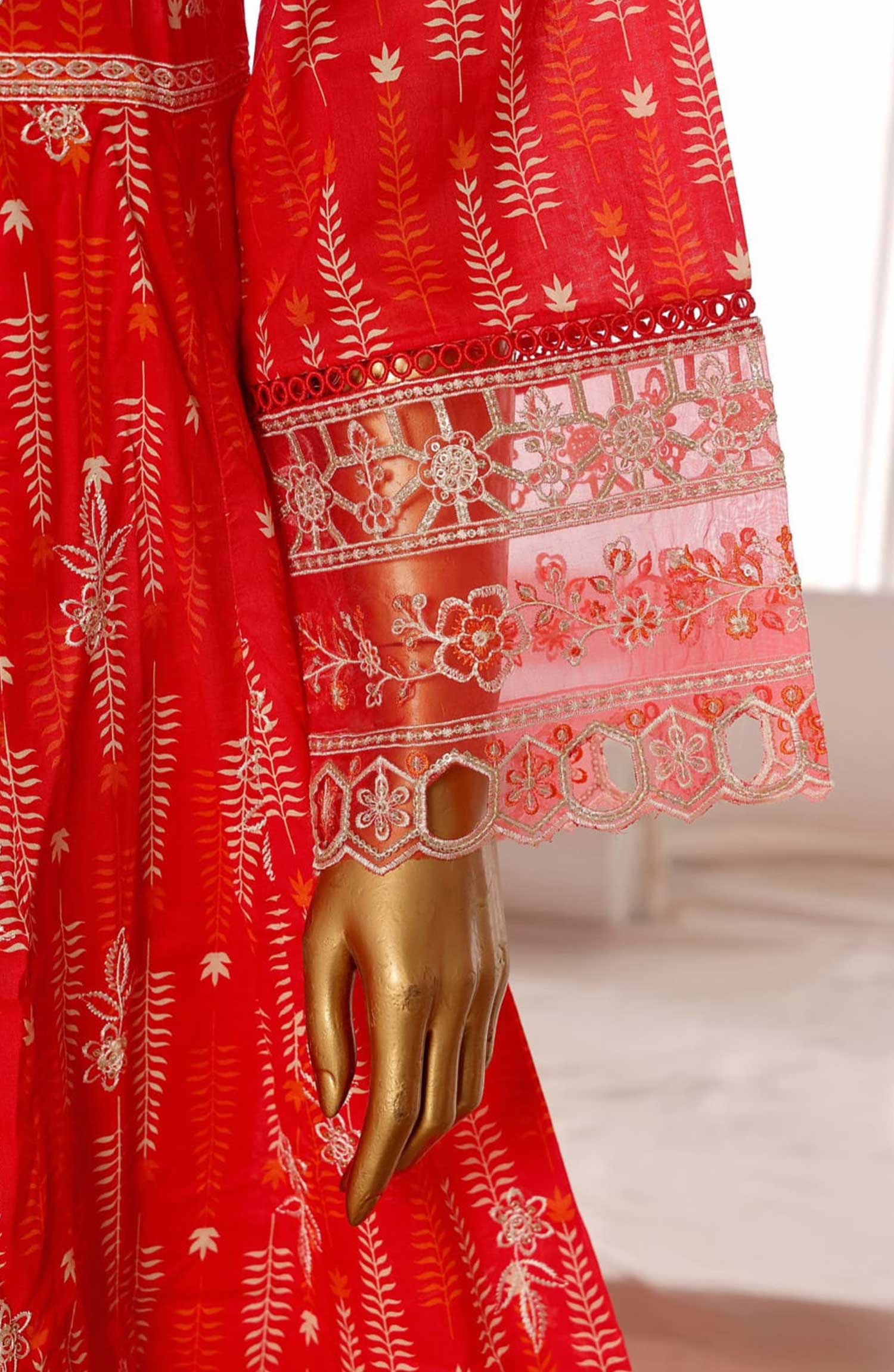 Bin Saeed Embroidered Lawn Frock Stitched 3 Piece - SM 798 - BS25LF - Red - Summer Collection