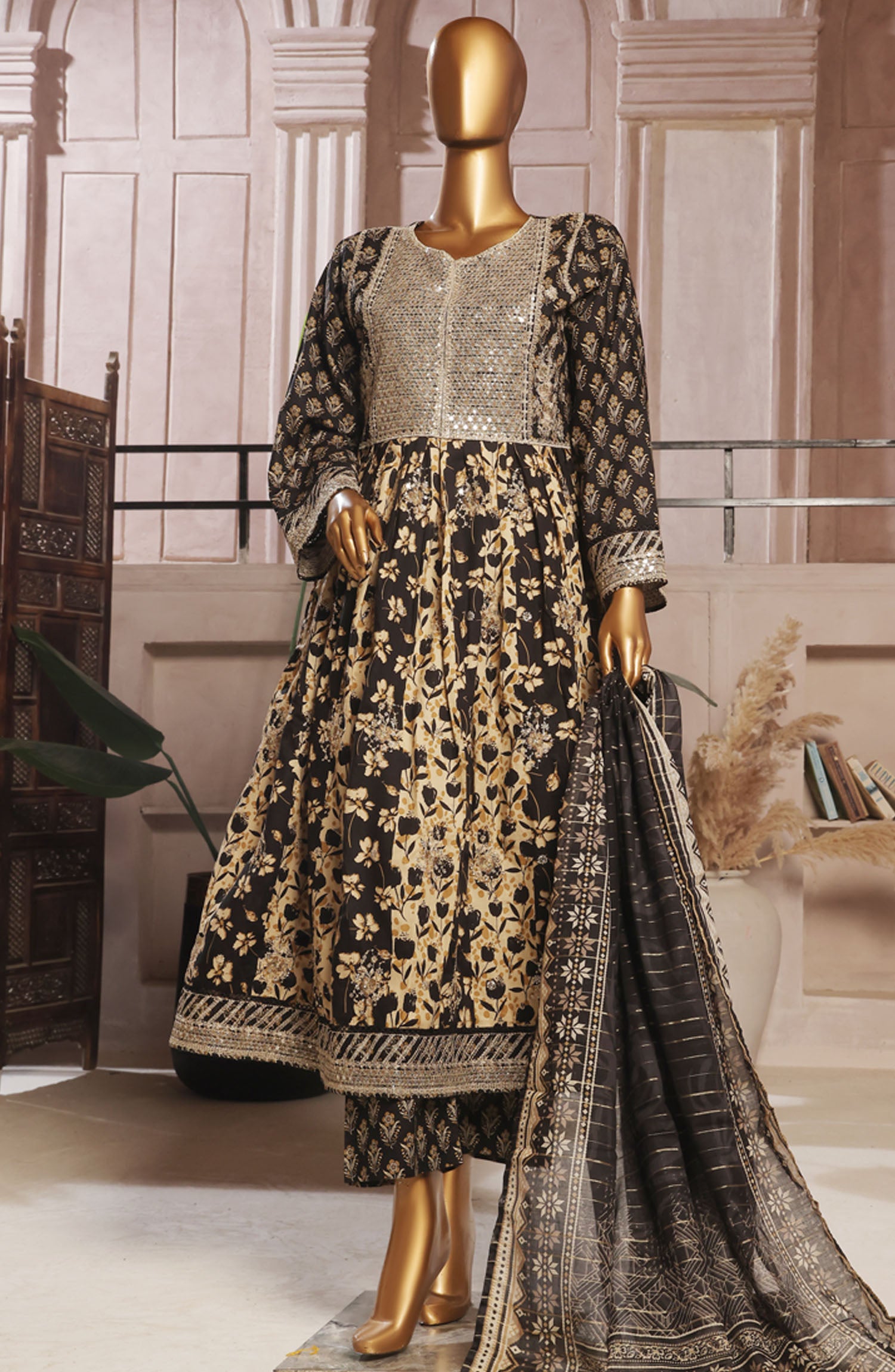 Home Bin Saeed Embroidered Lawn Stitched 3 Piece Frock - D-05 - BS25ELEF - Black - Summer Collection