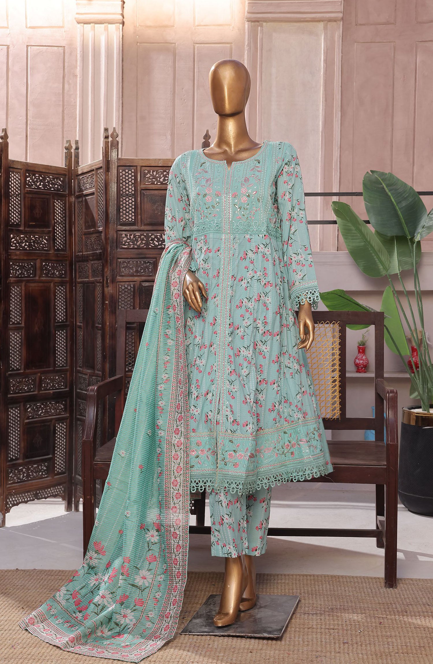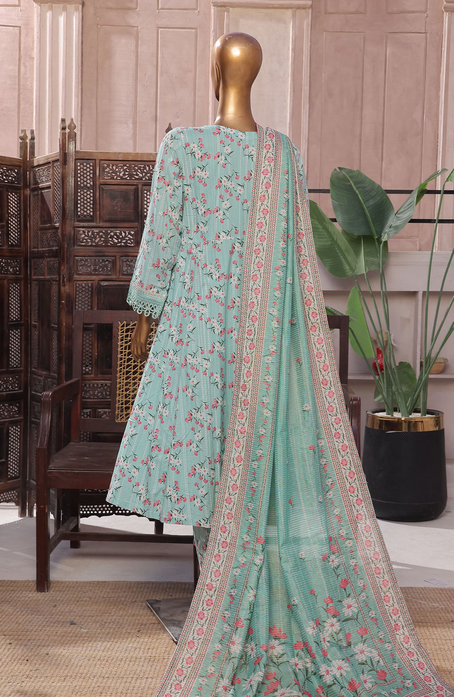 Home Bin Saeed Embroidered Lawn Stitched 3 Piece Frock - D-05 - BS25LEFV2 - Blue - Summer Collection