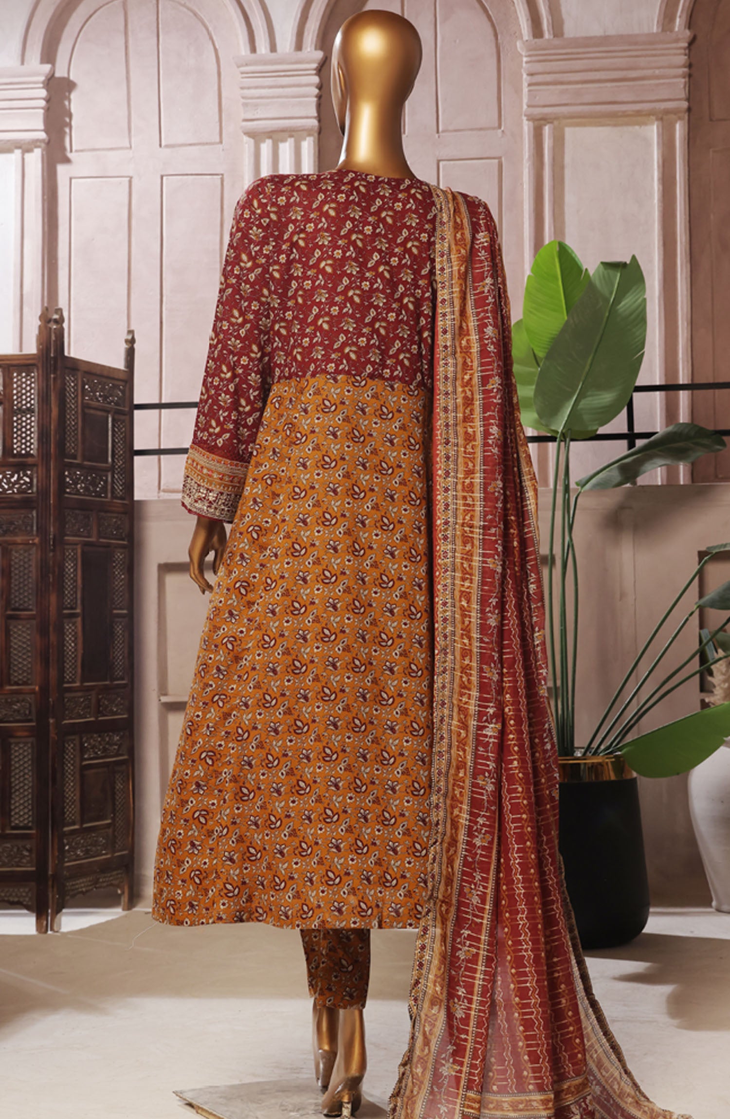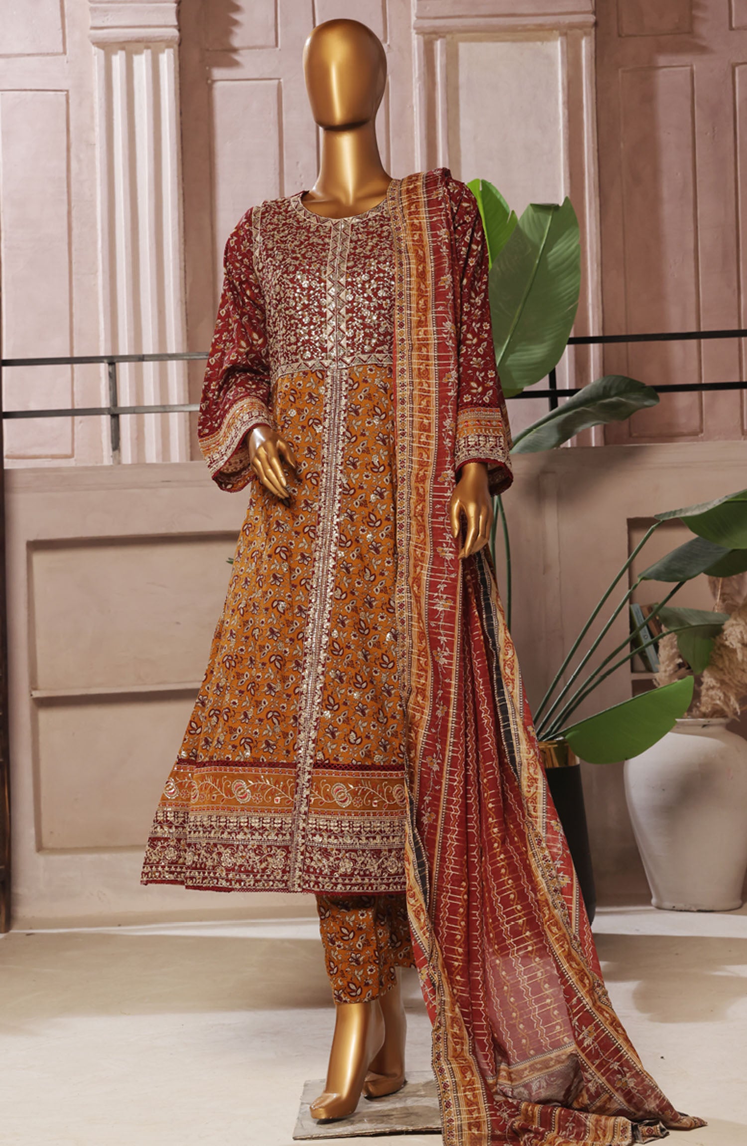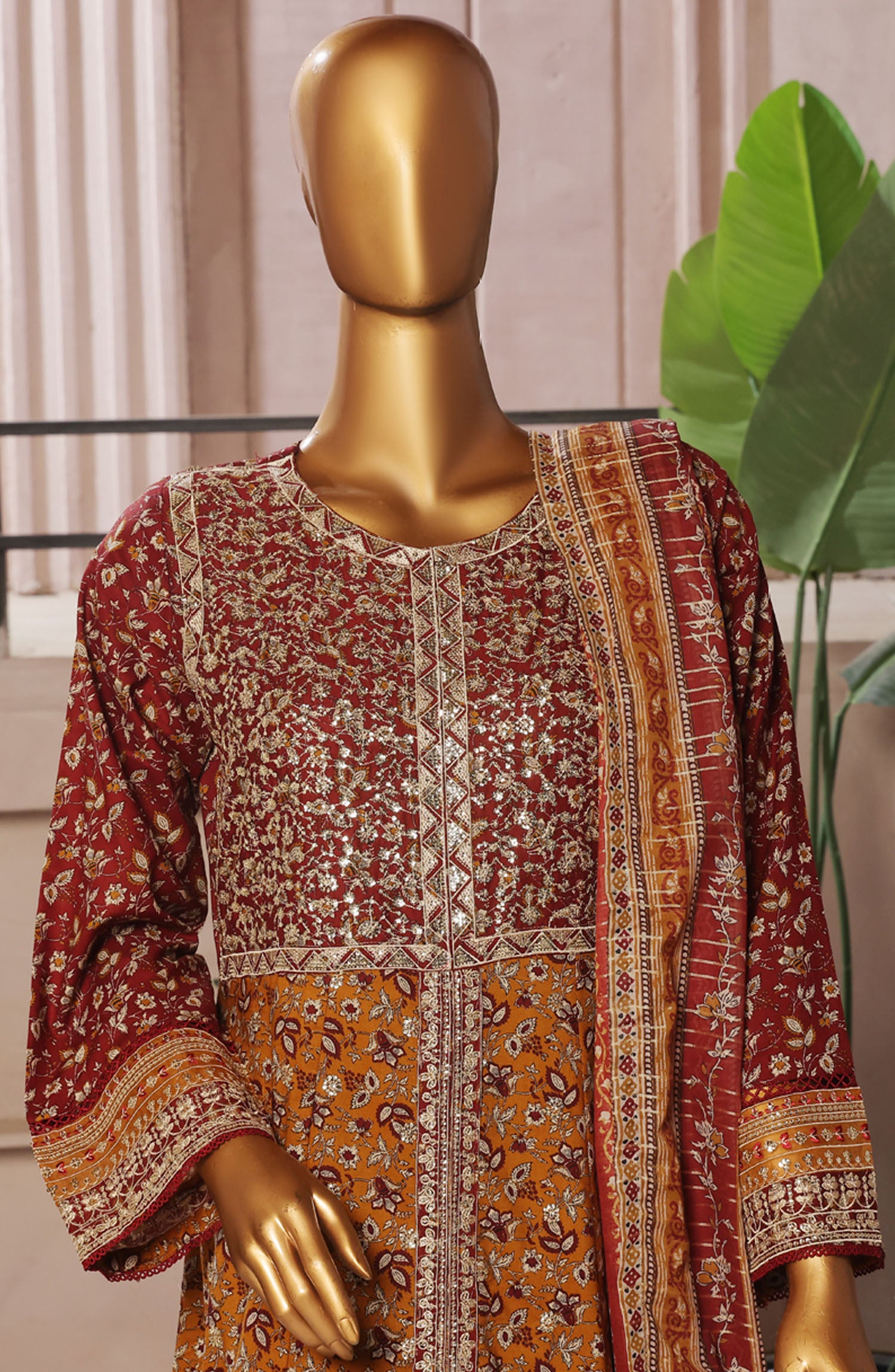 Home Bin Saeed Embroidered Lawn Stitched 3 Piece Frock - D-06 - BS25ELEF - Orange - Summer Collection