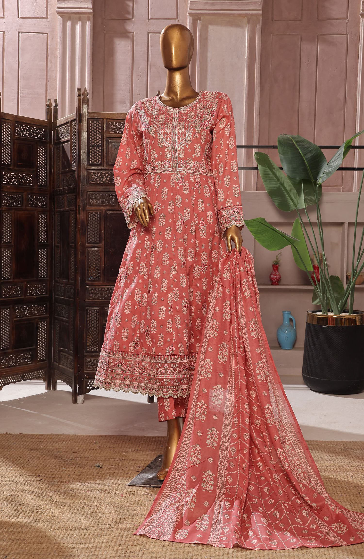 Home Bin Saeed Embroidered Lawn Stitched 3 Piece Frock - D-09 - BS25LEFV2 - Pink - Summer Collection