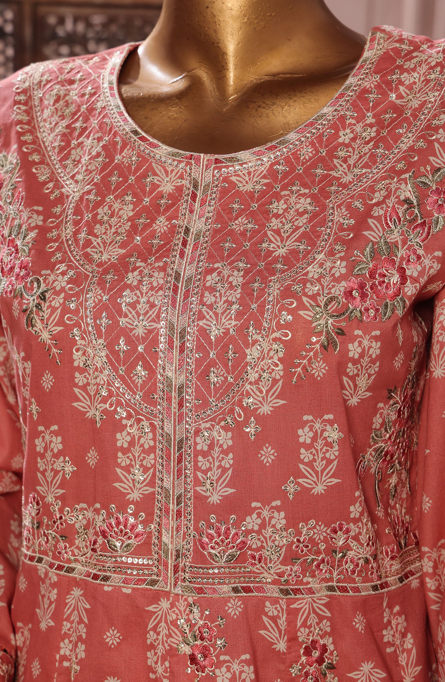 Modest Embroidered Khaddar Stitched 3 Piece Suit - 10040-Pnk - MOD25WNT - Pink - Winter Collection
