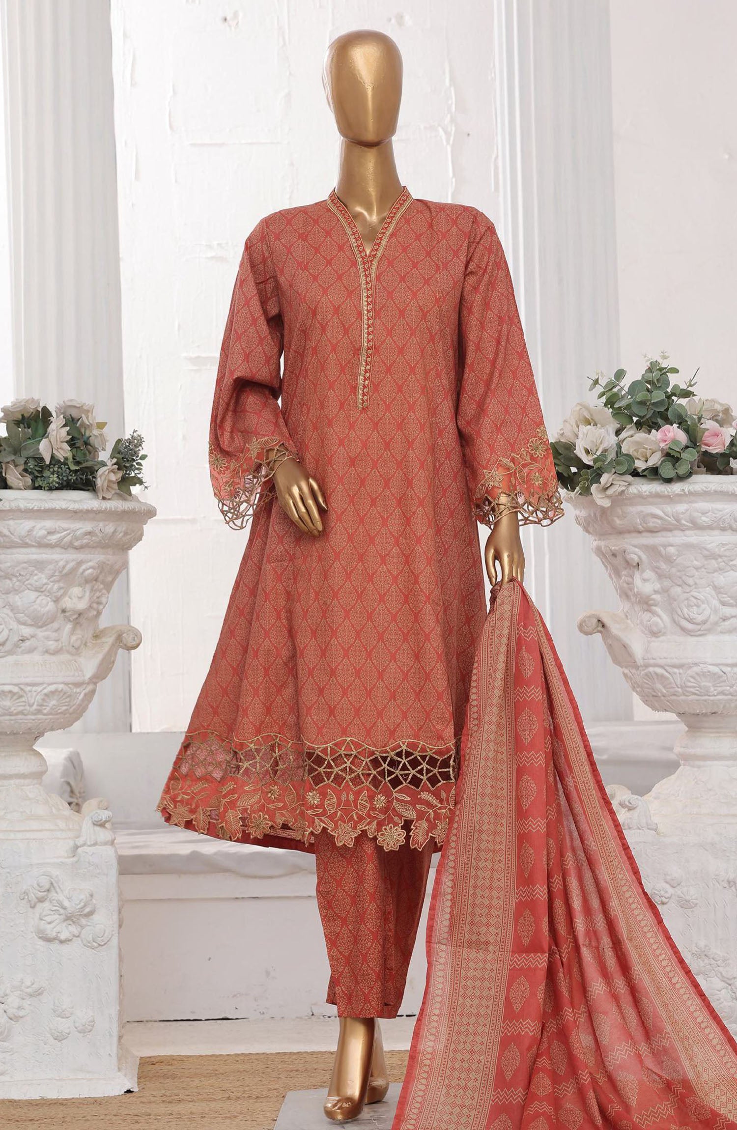 Home Bin Saeed Embroidered Lawn Stitched 3 Piece Frock - SM-358 - BS25LFV3 - Pink - Summer Collection
