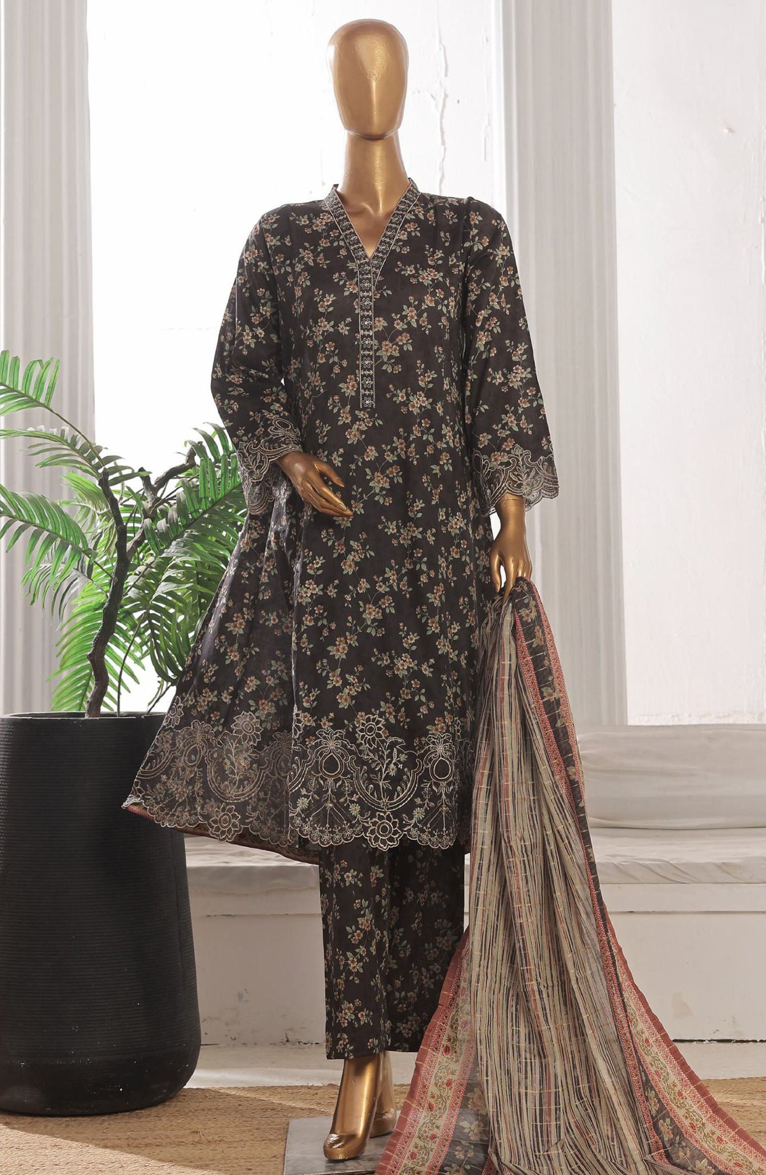 Home Bin Saeed Embroidered Lawn Stitched 3 Piece Frock - SM-628 - BS25LFV3 - Black - Summer Collection
