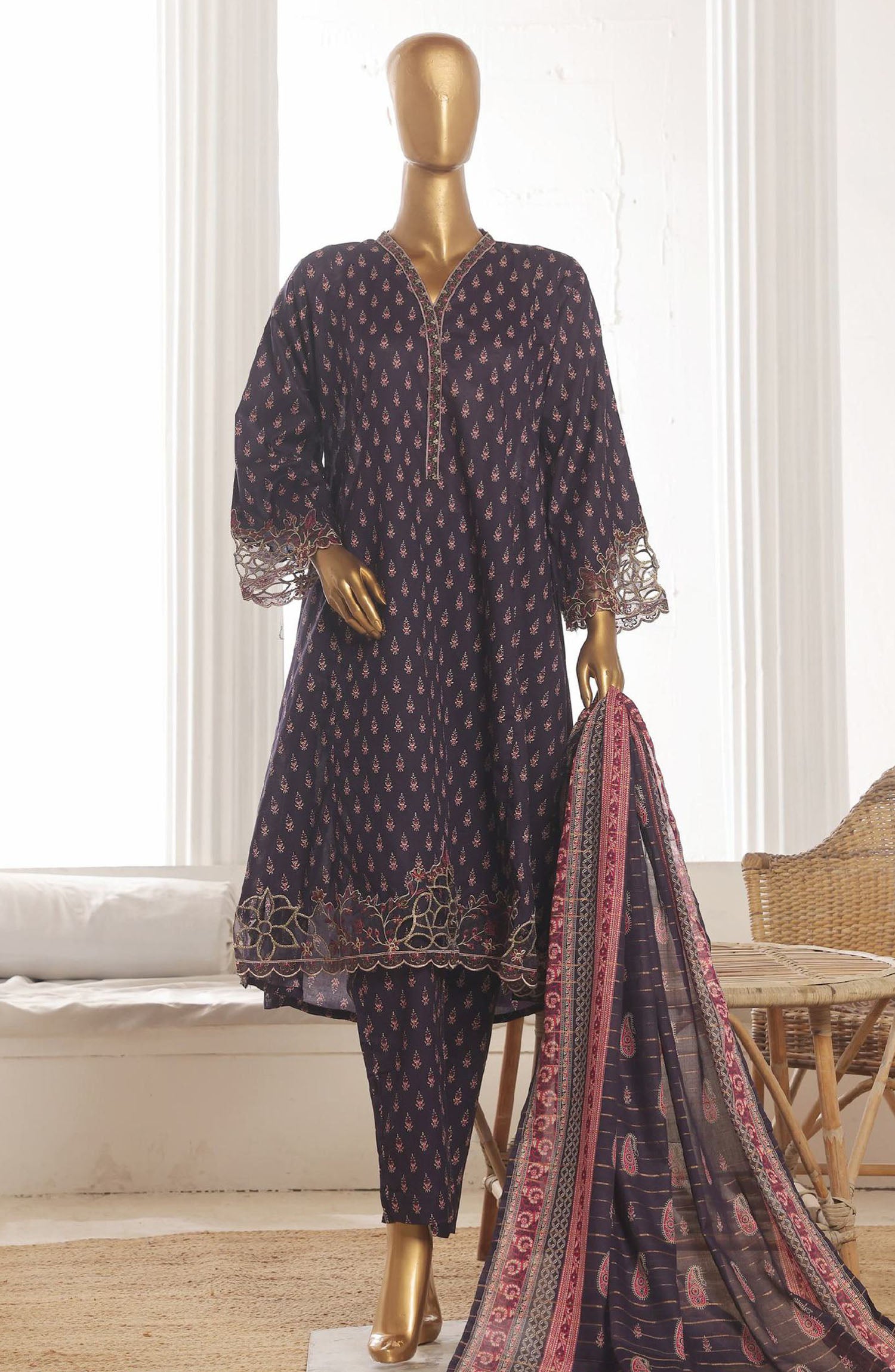 Home Bin Saeed Embroidered Lawn Stitched 3 Piece Frock - SM-632 - BS25LFV3 - Purple - Summer Collection