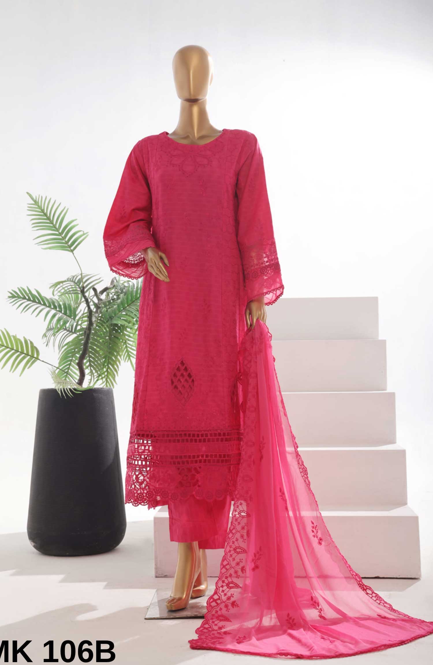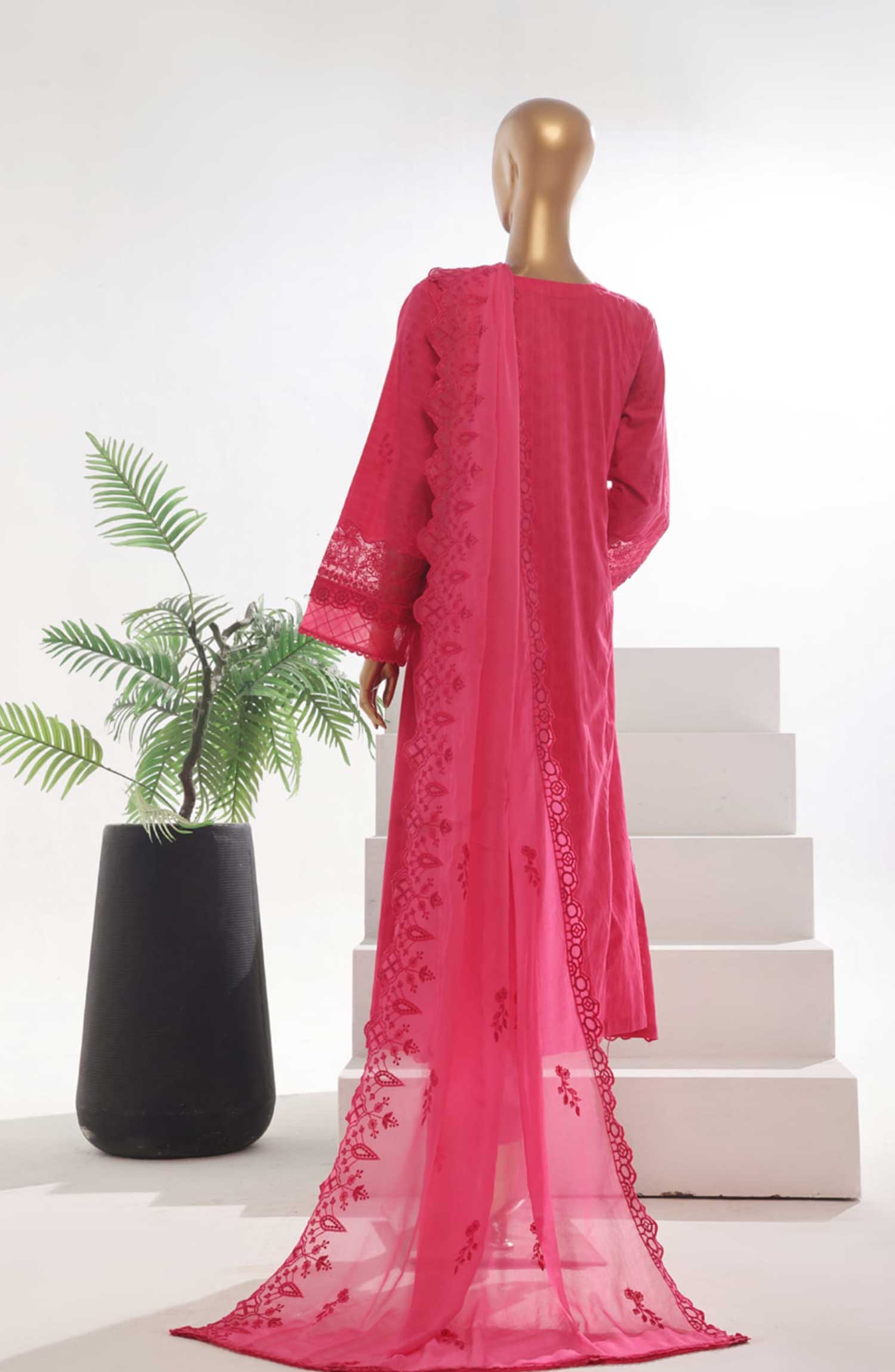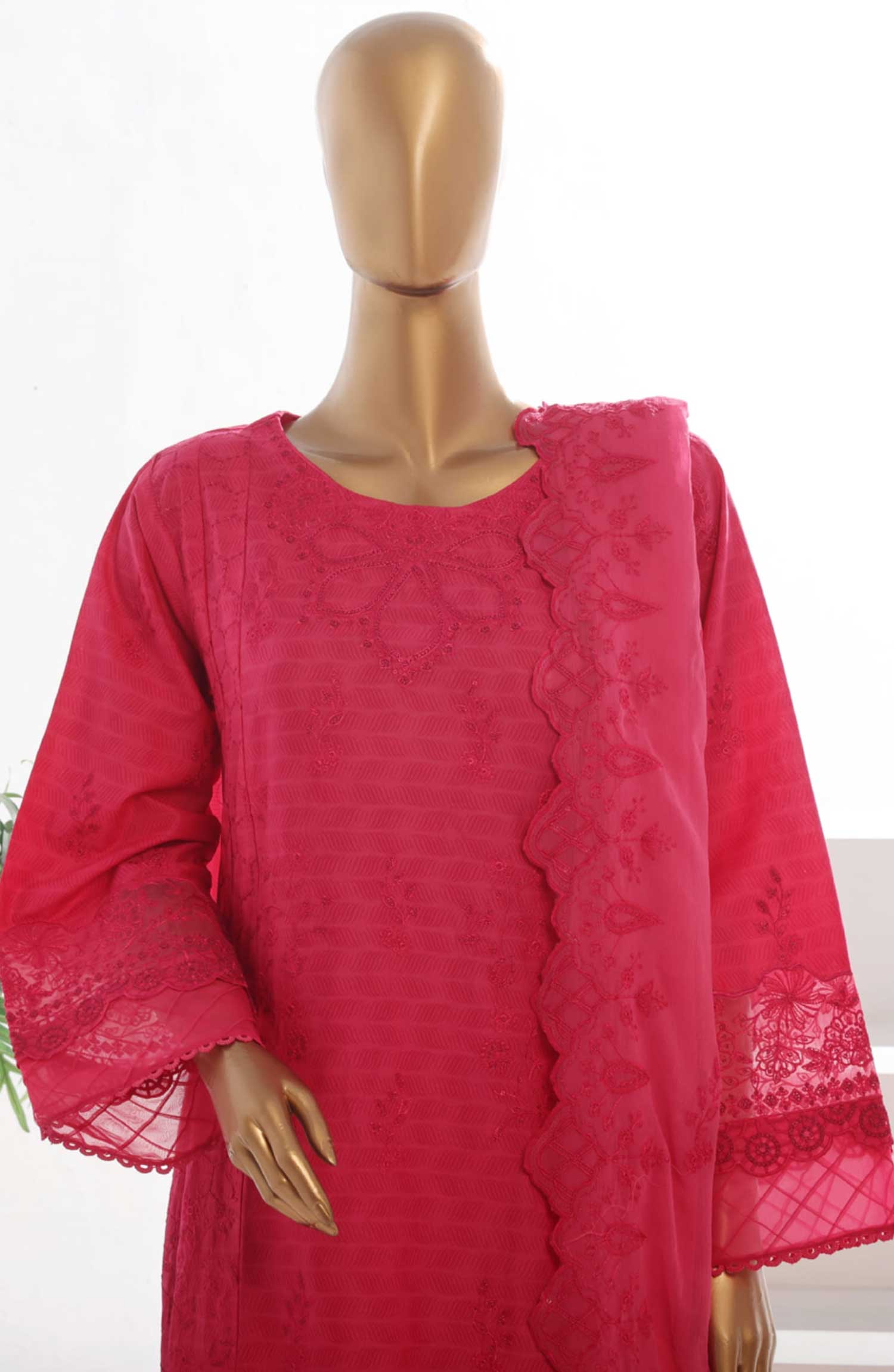 Bin Saeed Embroidered Lawn Stitched 3 Piece Frock - SMK 106B - BS25LF - Hot Pink - Summer Collection