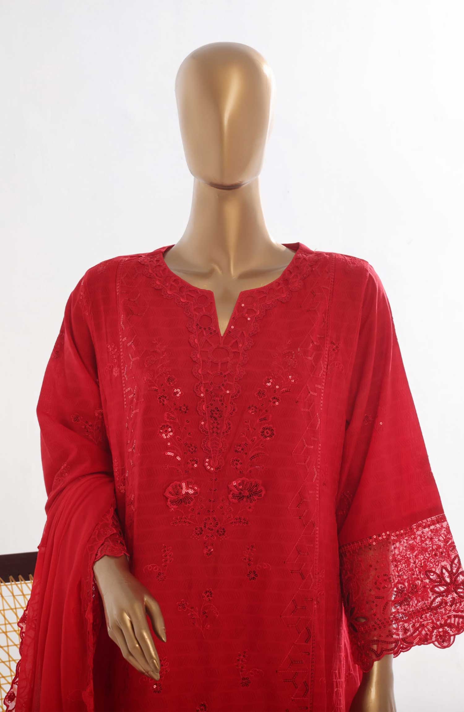 Home Bin Saeed Embroidered Lawn Stitched 3 Piece Frock - SMK 107B - BS25LF - Red - Summer Collection