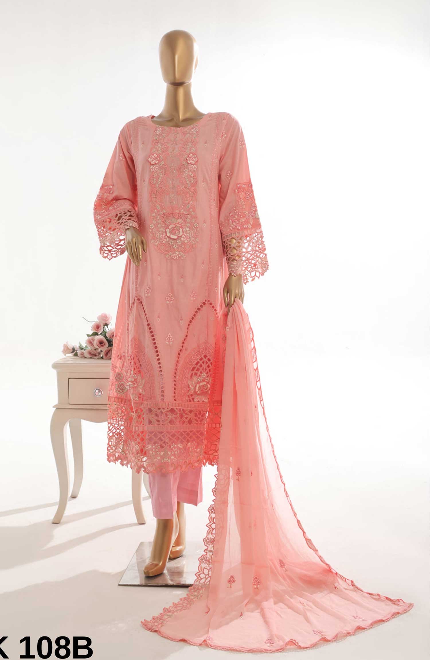 Bin Saeed Embroidered Lawn Stitched 3 Piece Frock - SMK 108B - BS25LF - Pink - Summer Collection
