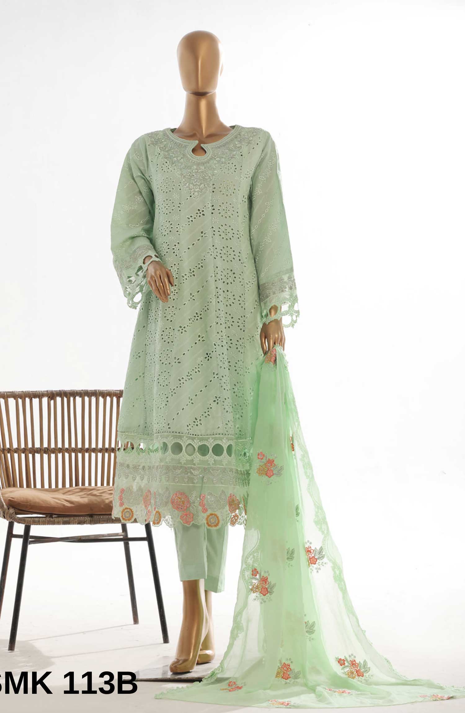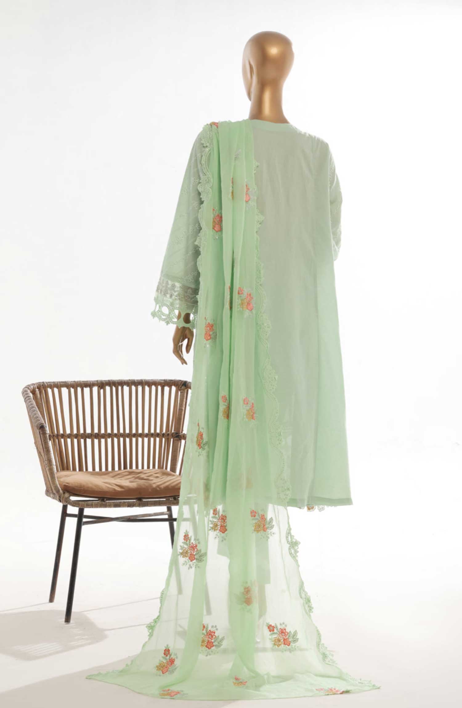 Home Bin Saeed Embroidered Lawn Stitched 3 Piece Frock - SMK 113B - BS25LF - Pista Green - Summer Collection