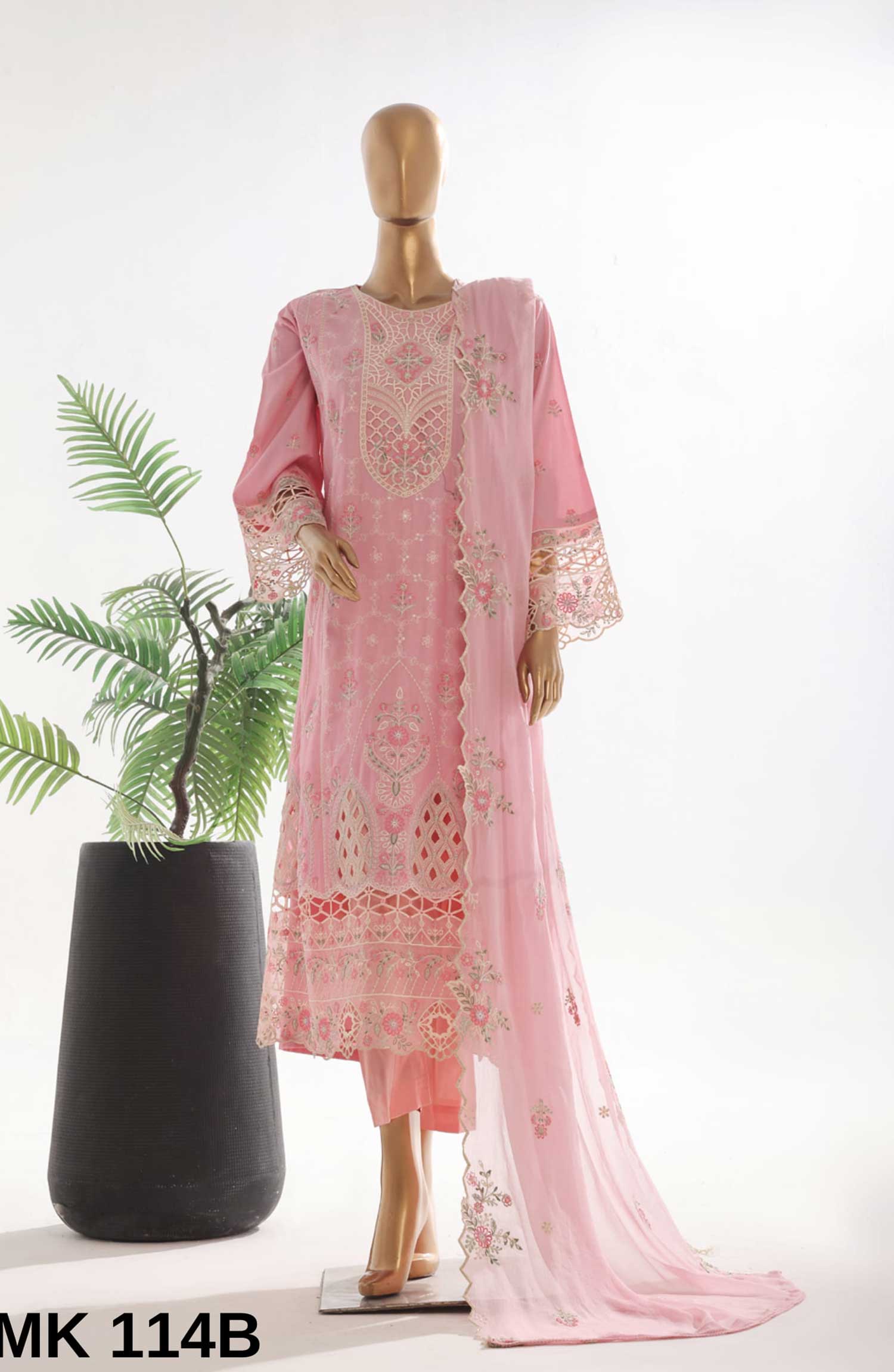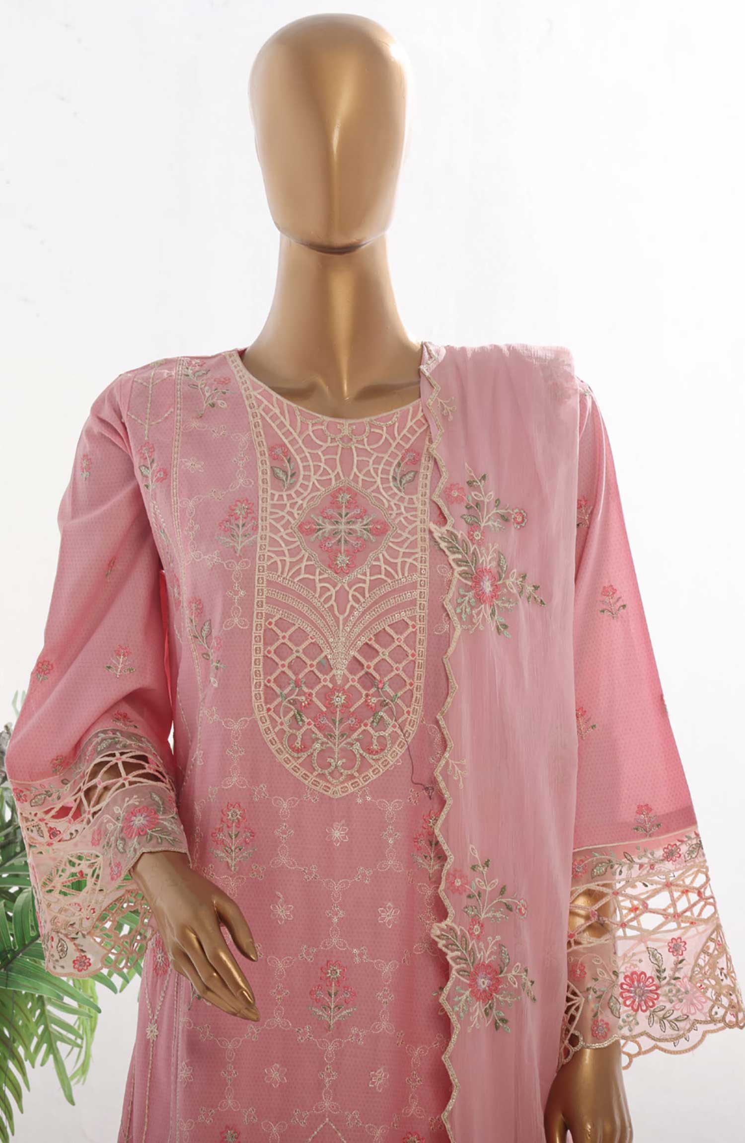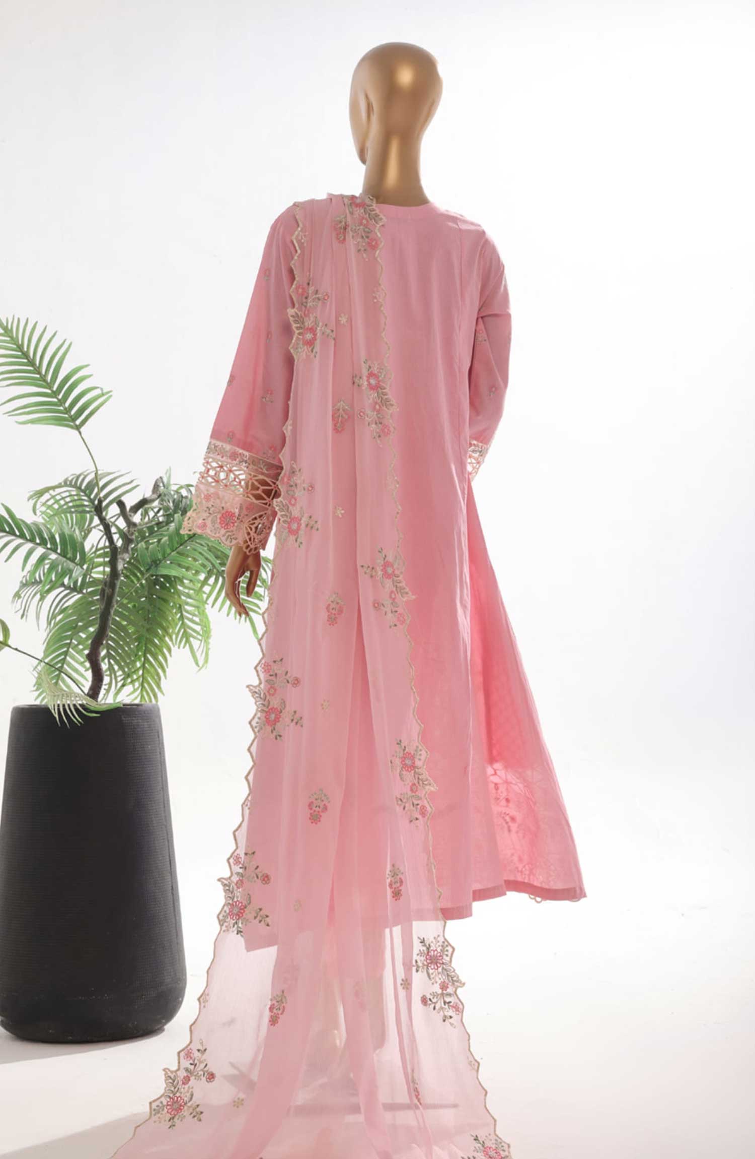 Home Bin Saeed Embroidered Lawn Stitched 3 Piece Frock - SMK 114B - BS25LF - Pink - Summer Collection