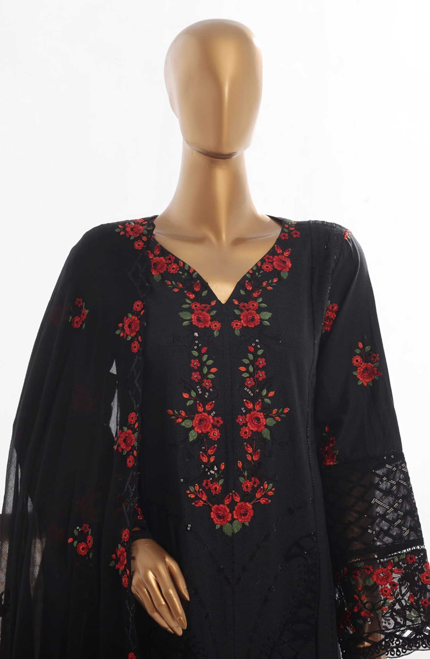 Exclusive Luxury Laserkari Self n Self Stitched Frock with Embroidered Chiffon Dupatta and Trouser.