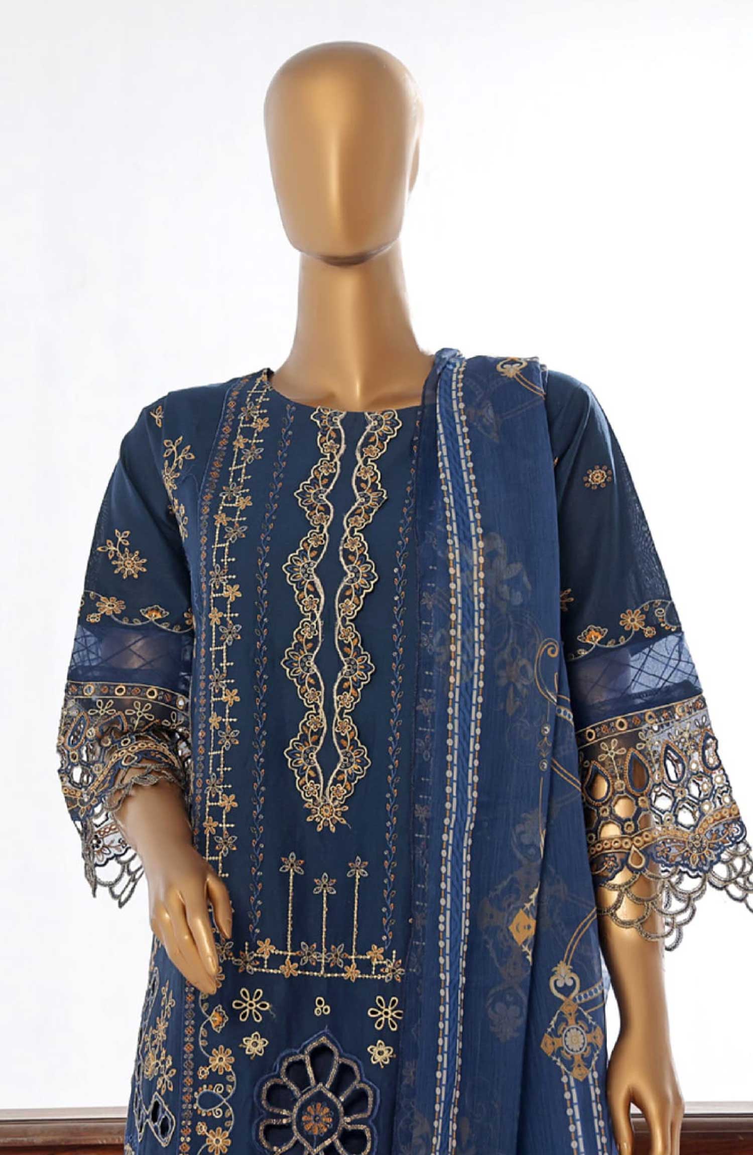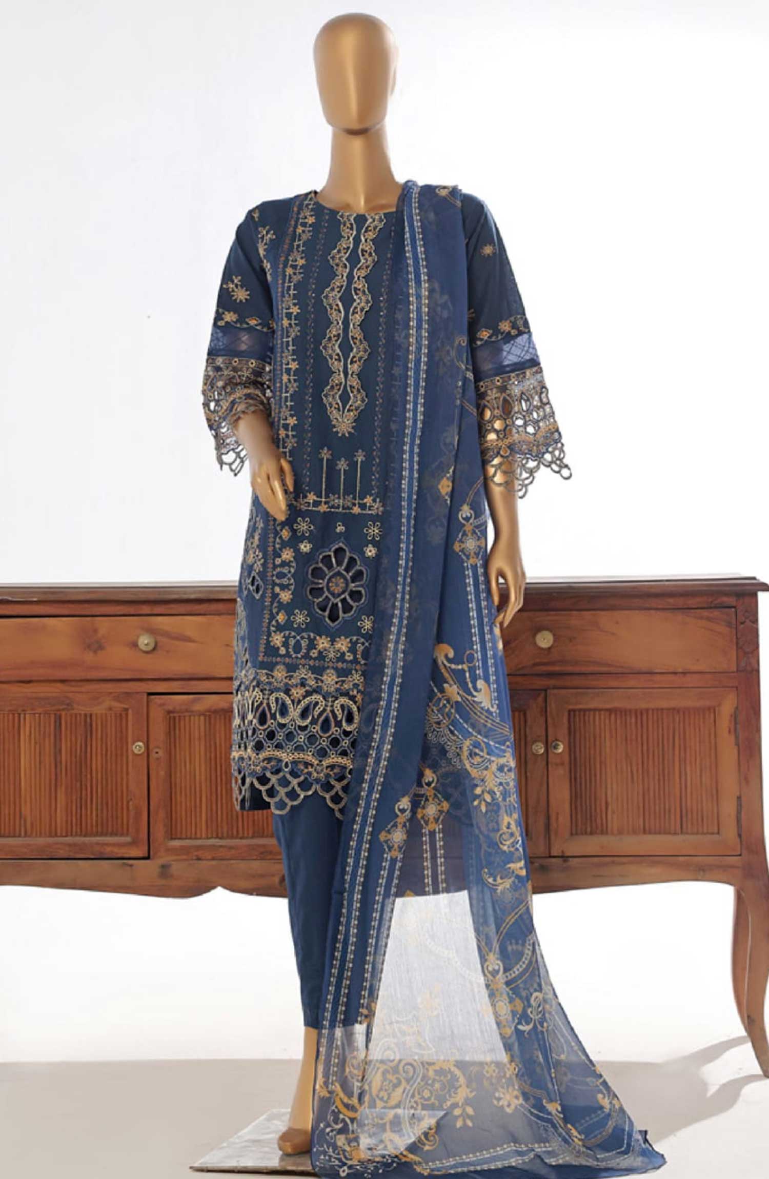 Home Bin Saeed Embroidered Lawn Stitched 3 Piece - Lf 046 B - BS25EL - Blue - Summer Collection