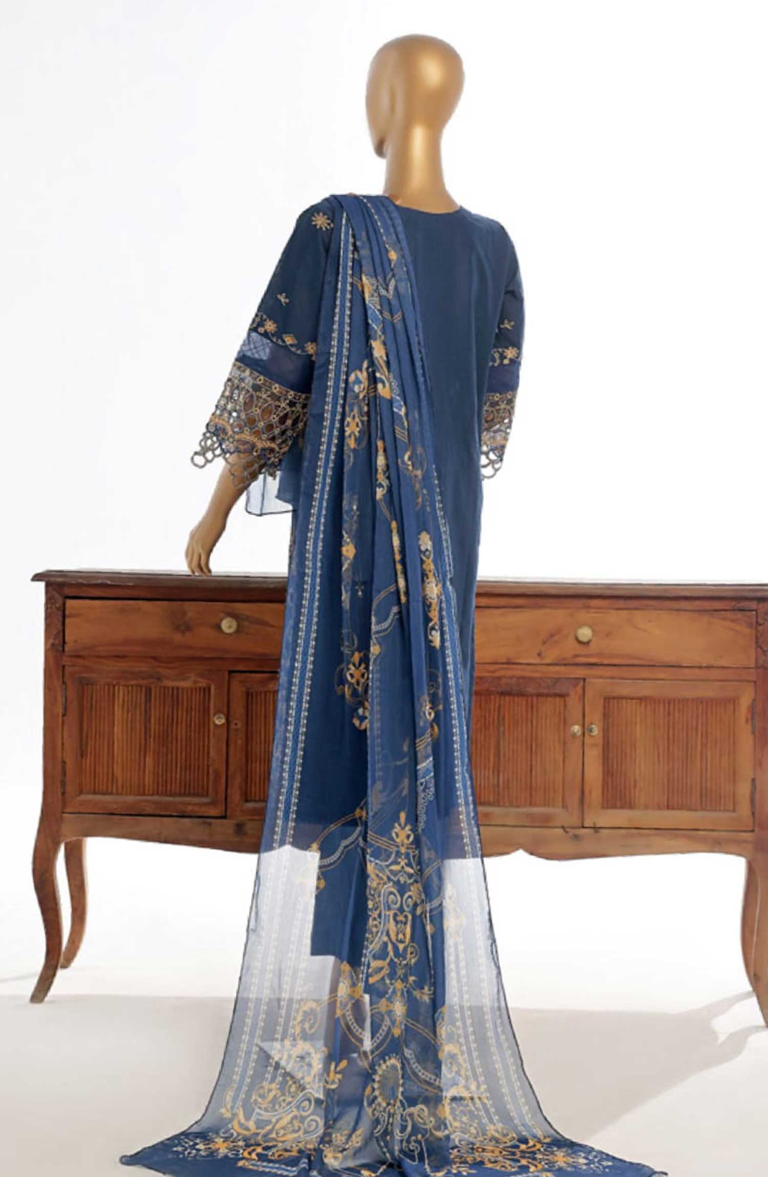Bin Saeed Embroidered Lawn Stitched 3 Piece - Lf 046 B - BS25EL - Blue - Summer Collection
