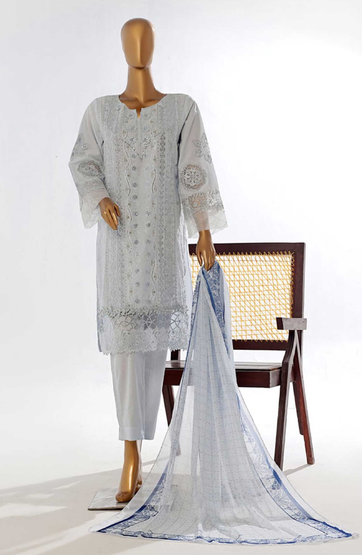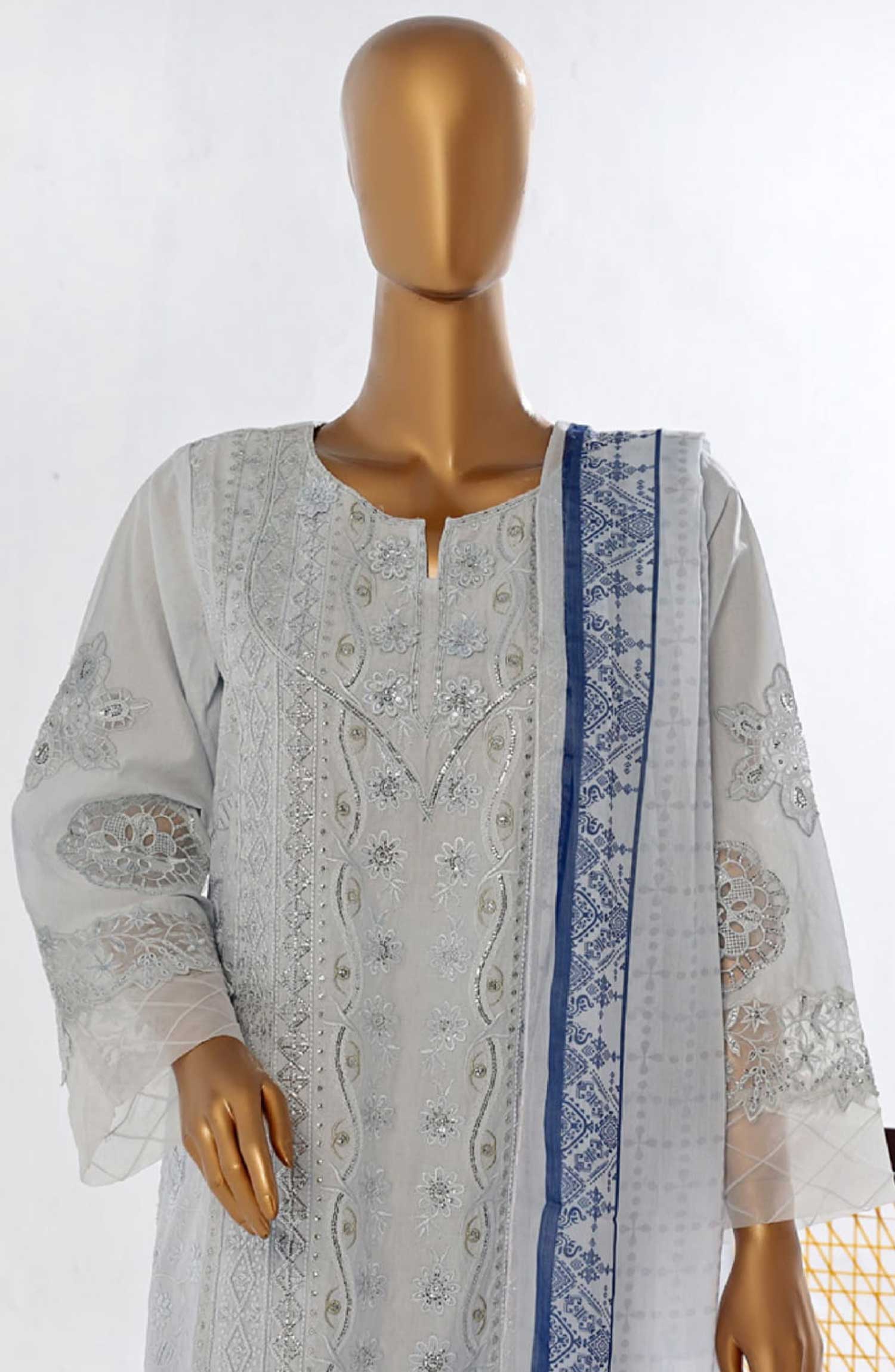 Home Bin Saeed Embroidered Lawn Stitched 3 Piece - Lf 065 A - BS25EL - Light Blue - Summer Collection
