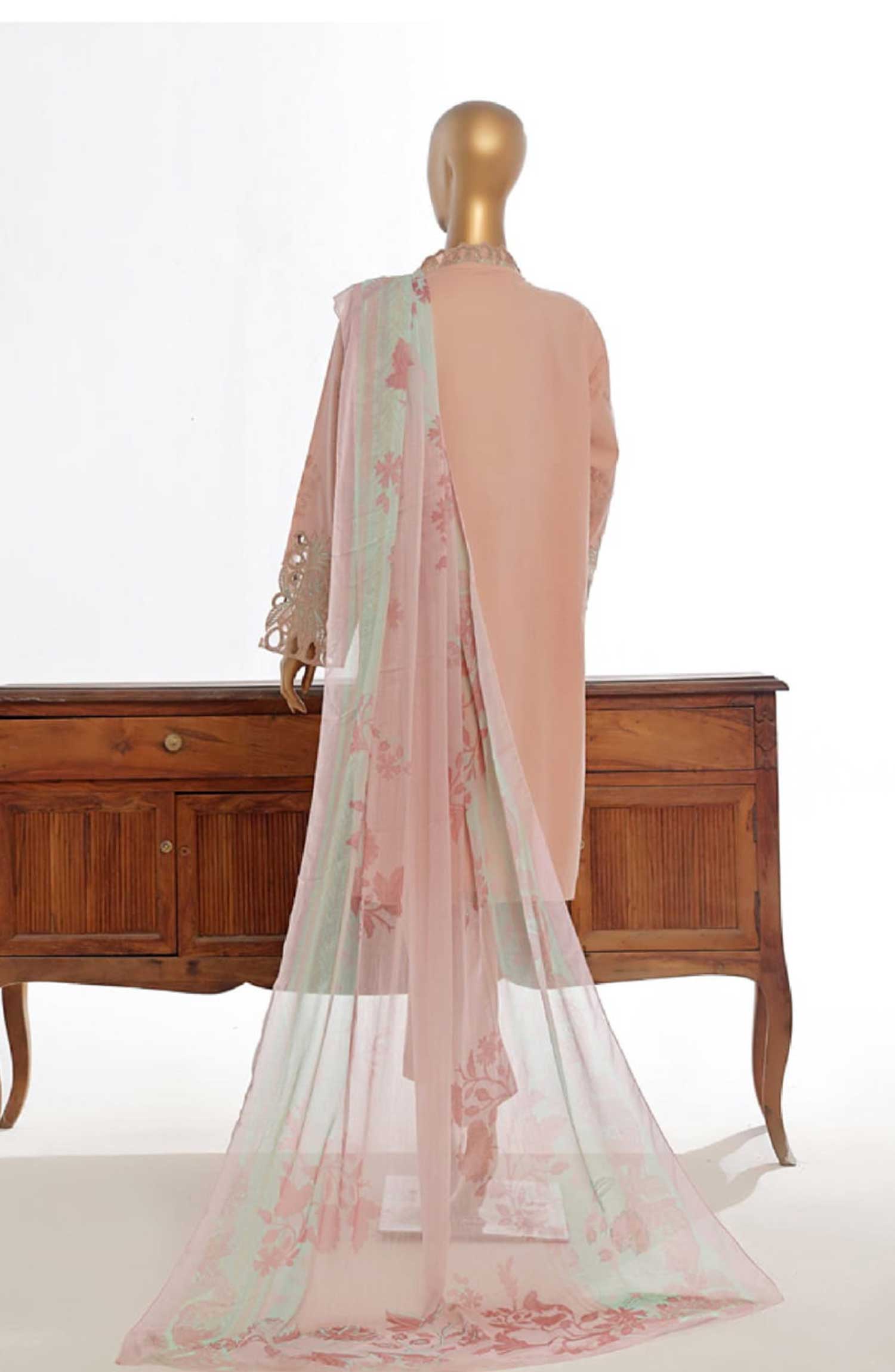 Modest Embroidered Khaddar Stitched 3 Piece Suit - 10040-Pnk - MOD25WNT - Pink - Winter Collection