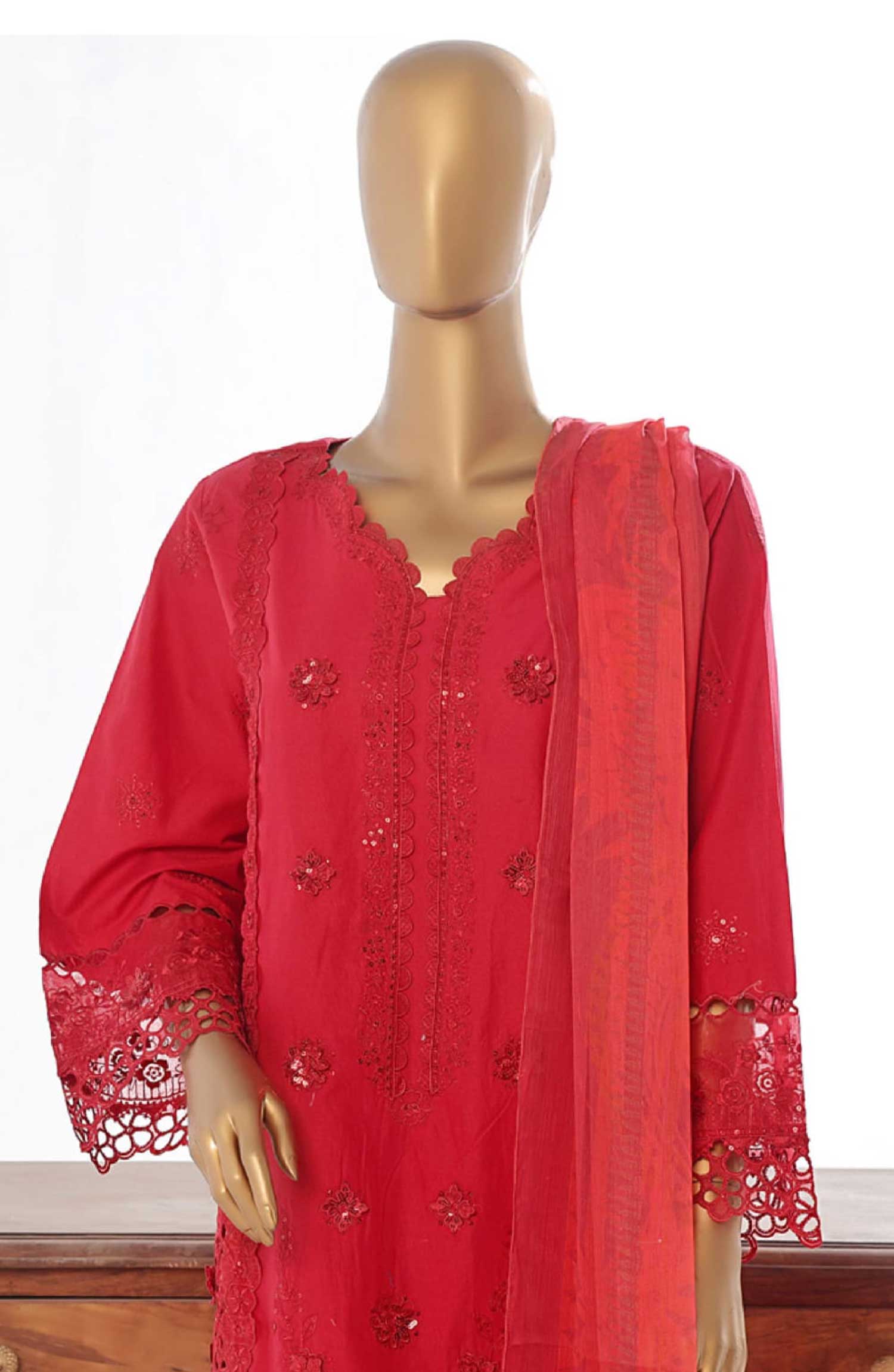 Home Bin Saeed Embroidered Lawn Stitched 3 Piece - Lf 144 B - BS25EL - Red - Summer Collection