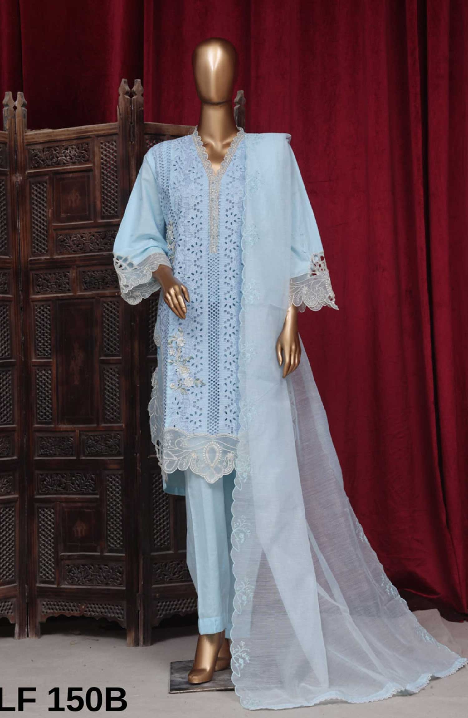 Bin Saeed Embroidered Lawn Stitched 3 Piece - LF 150B - BS25LF - Sky Blue - Summer Collection