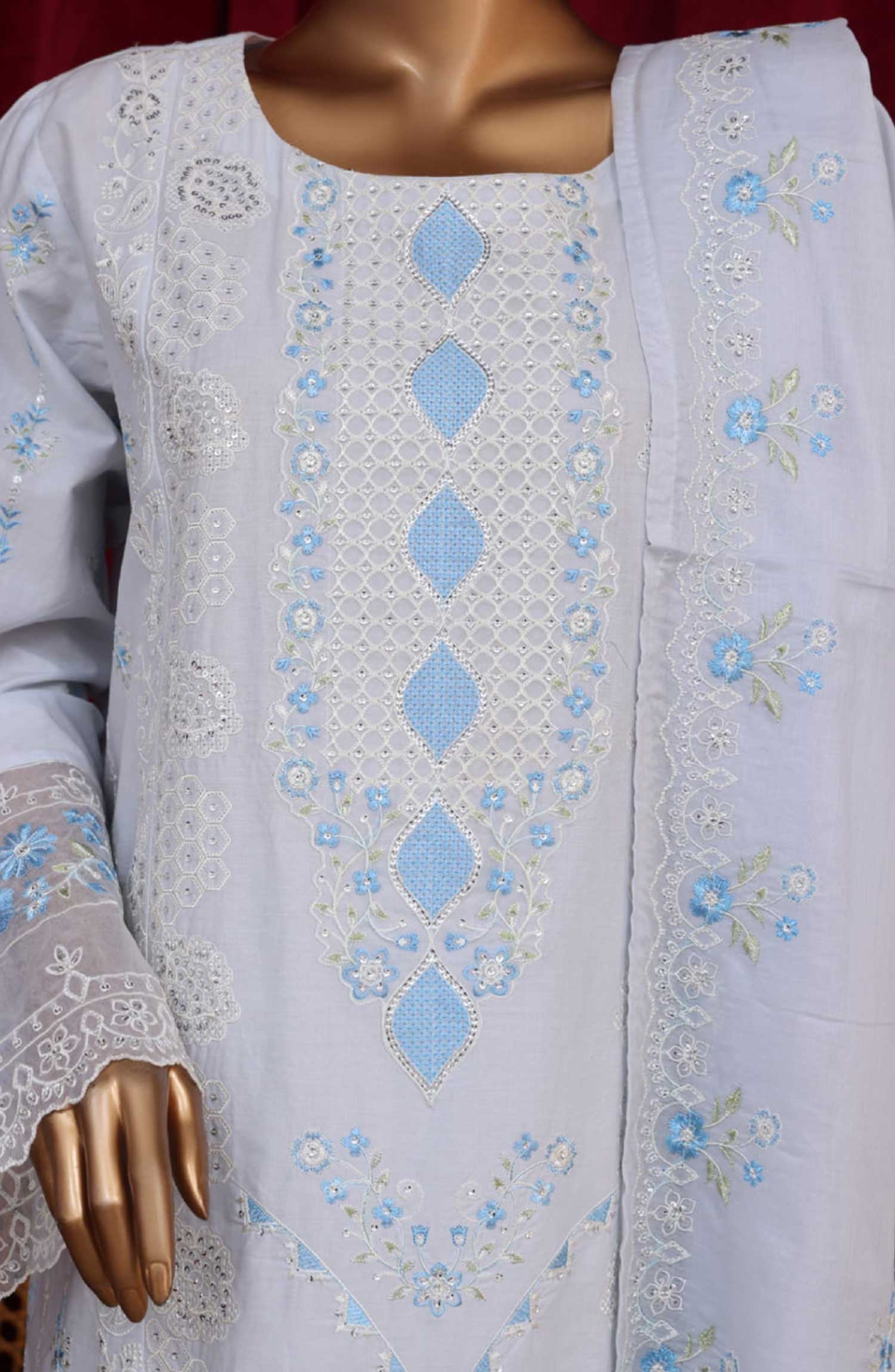 3 Piece Exclusive Stitched Luxury Embroidered Lawn Suit with Embroidered Dupatta .