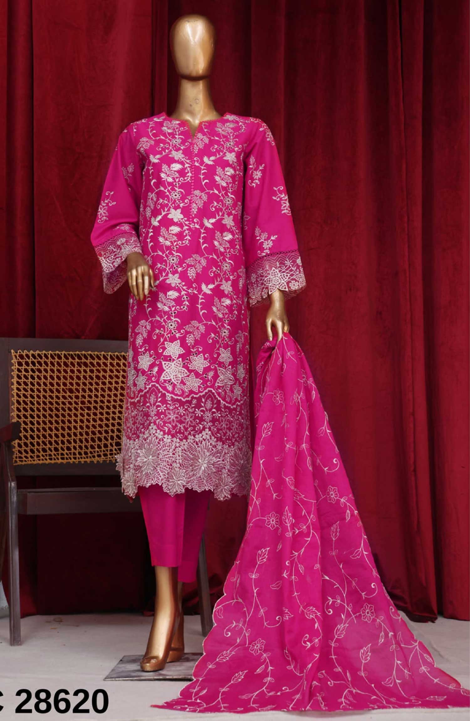 Bin Saeed Embroidered Lawn Stitched 3 Piece - PC 28620 - BS25LF - Hot Pink - Summer Collection