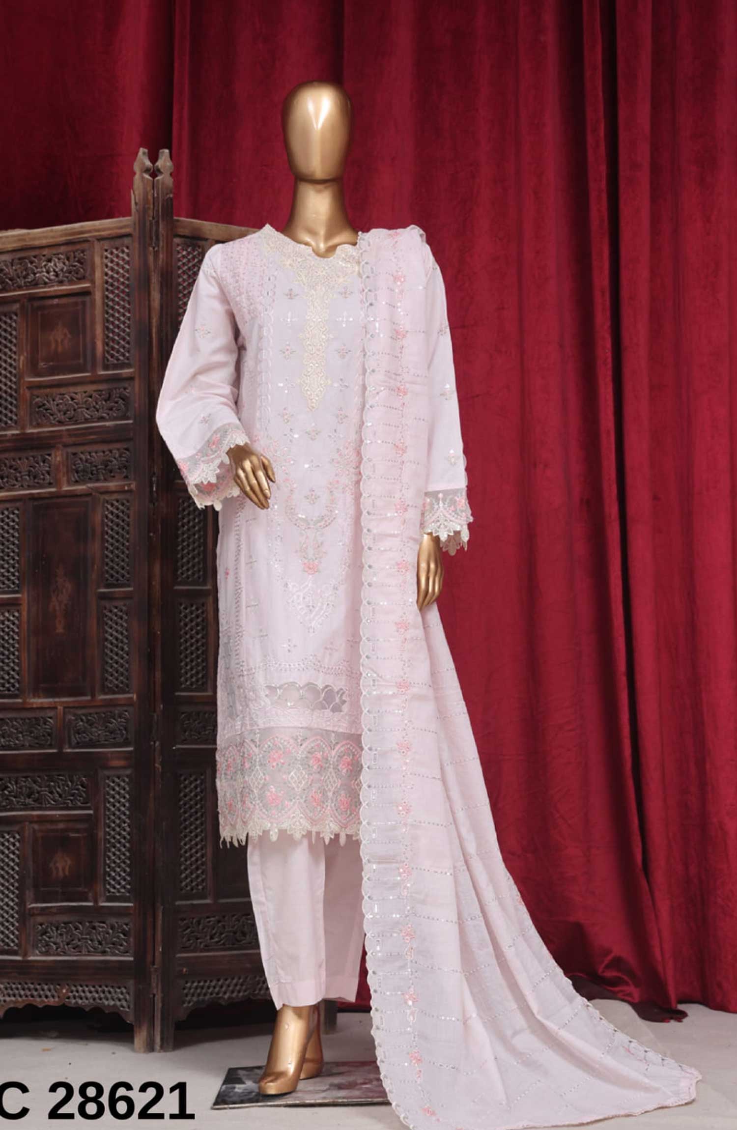 Bin Saeed Embroidered Lawn Stitched 3 Piece - PC 28621 - BS25LF - Light Pink - Summer Collection