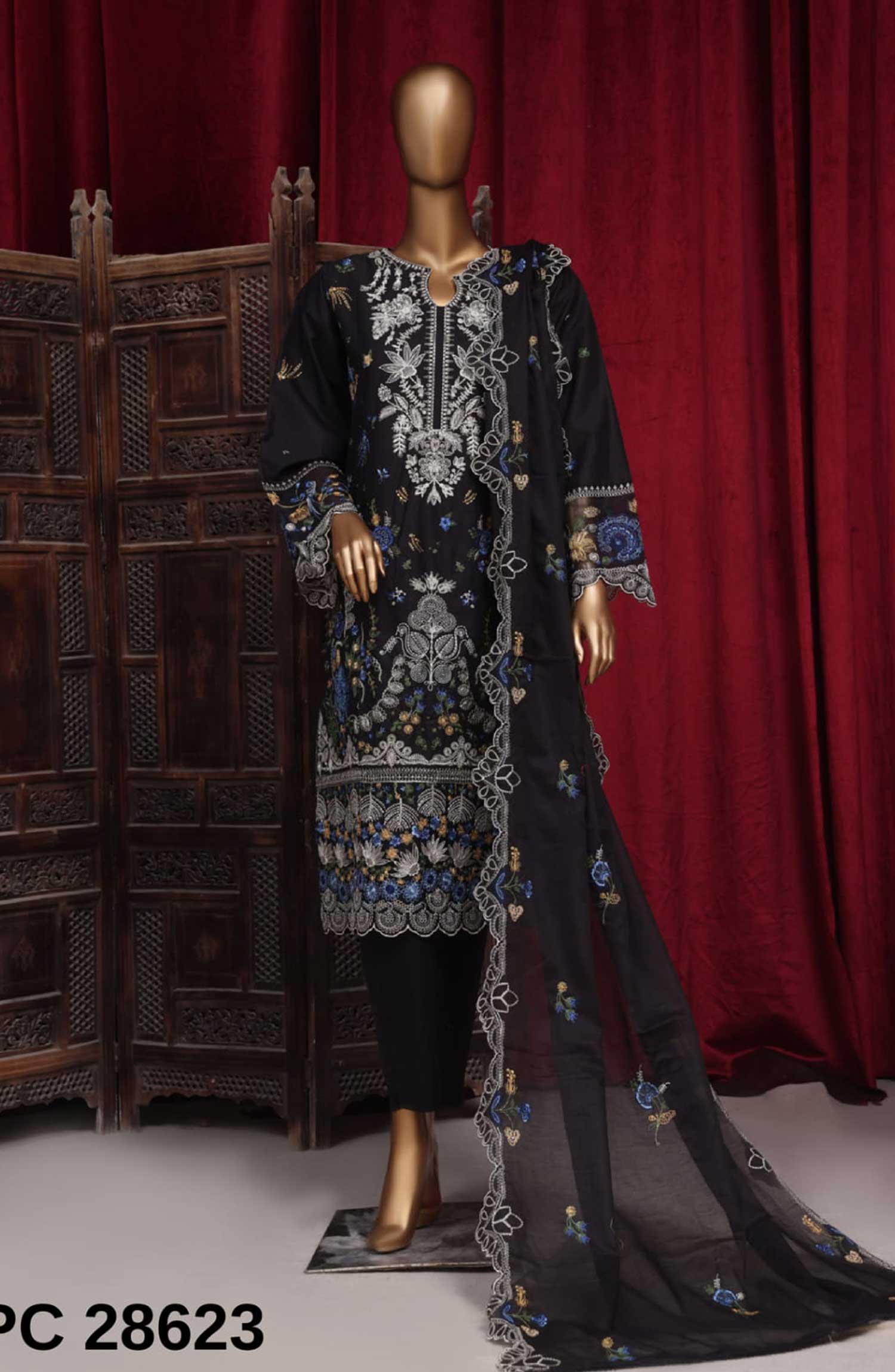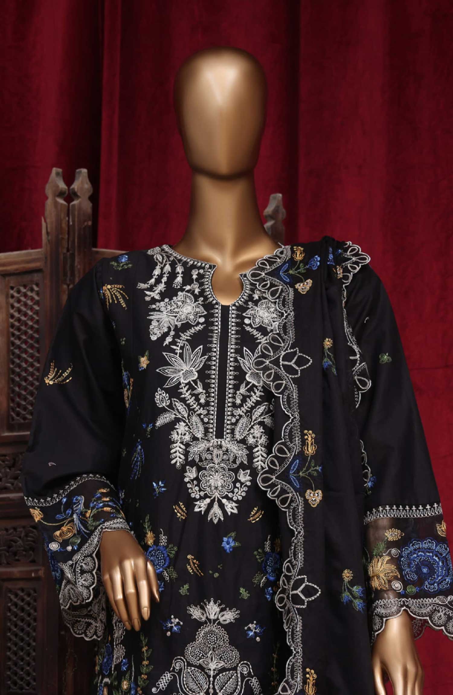 Home Bin Saeed Embroidered Lawn Stitched 3 Piece - PC 28623 - BS25LF - Black - Summer Collection