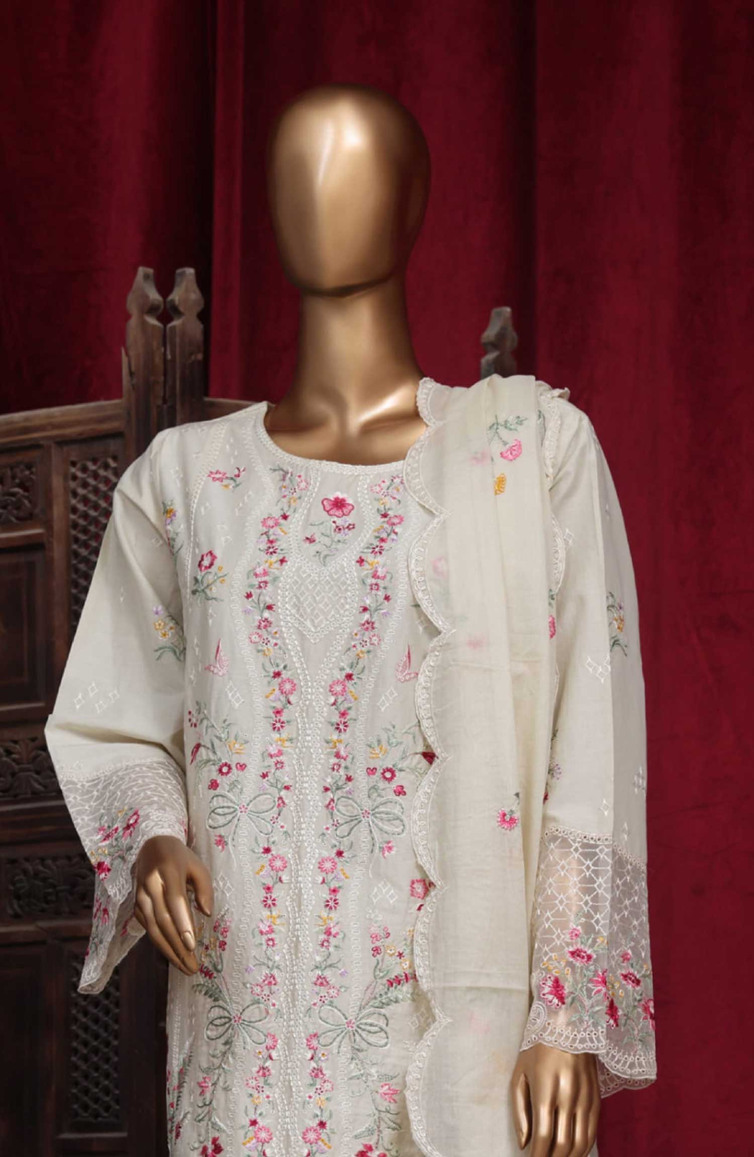 Home Bin Saeed Embroidered Lawn Stitched 3 Piece - PC 28624 - BS25LF - Cream - Summer Collection