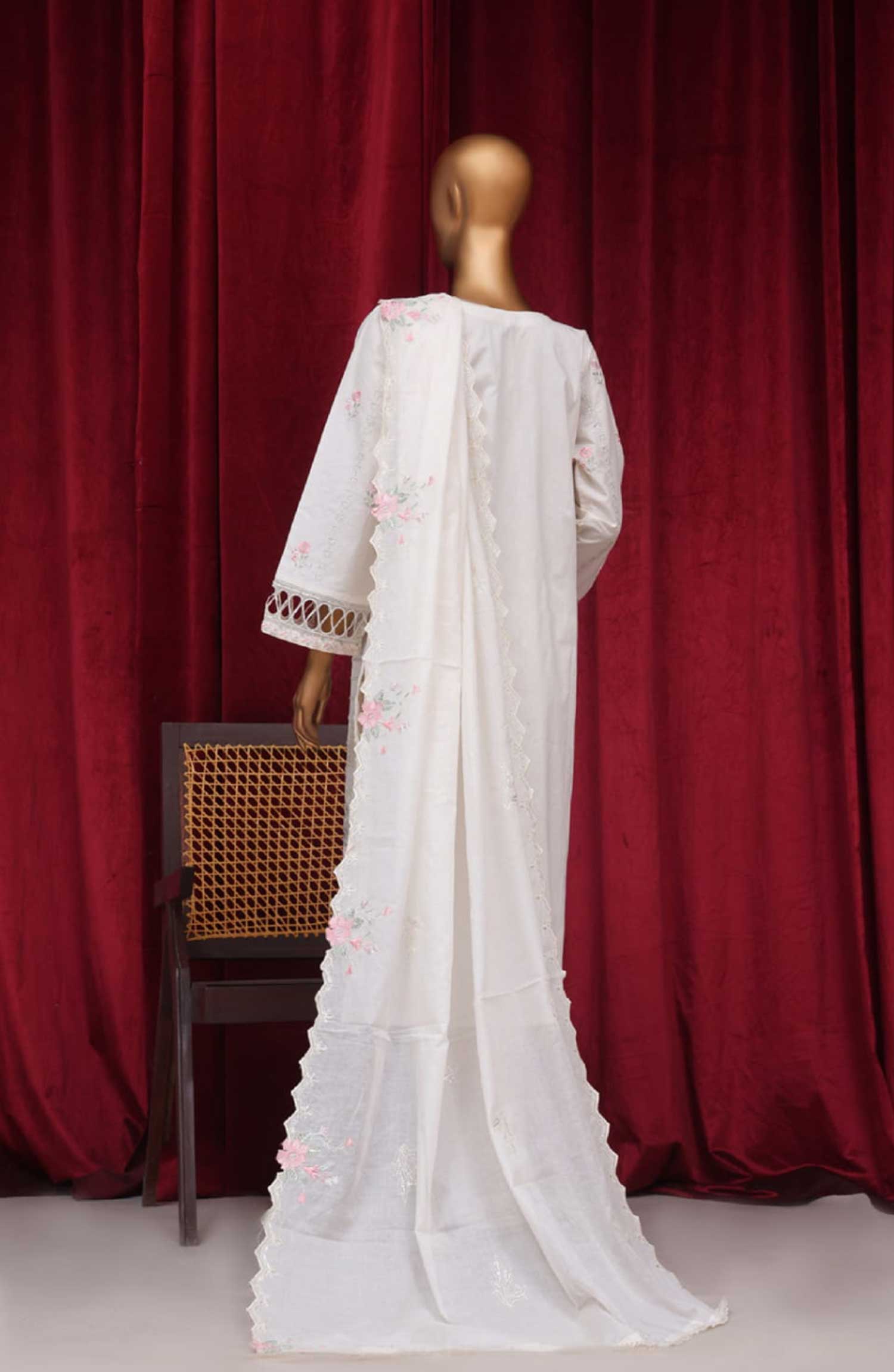 Home Bin Saeed Embroidered Lawn Stitched 3 Piece - PC 28627 - BS25LF - White - Summer Collection
