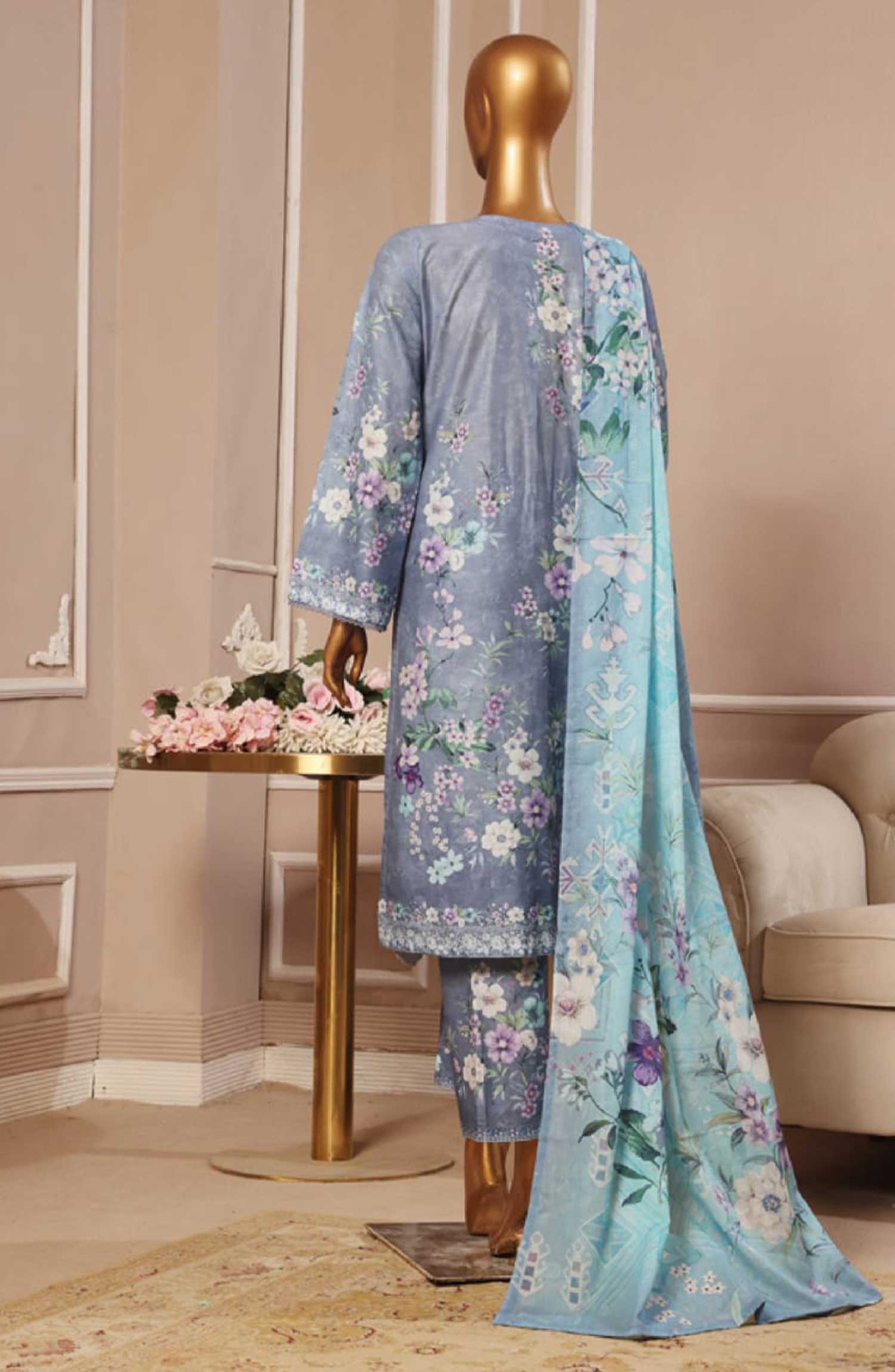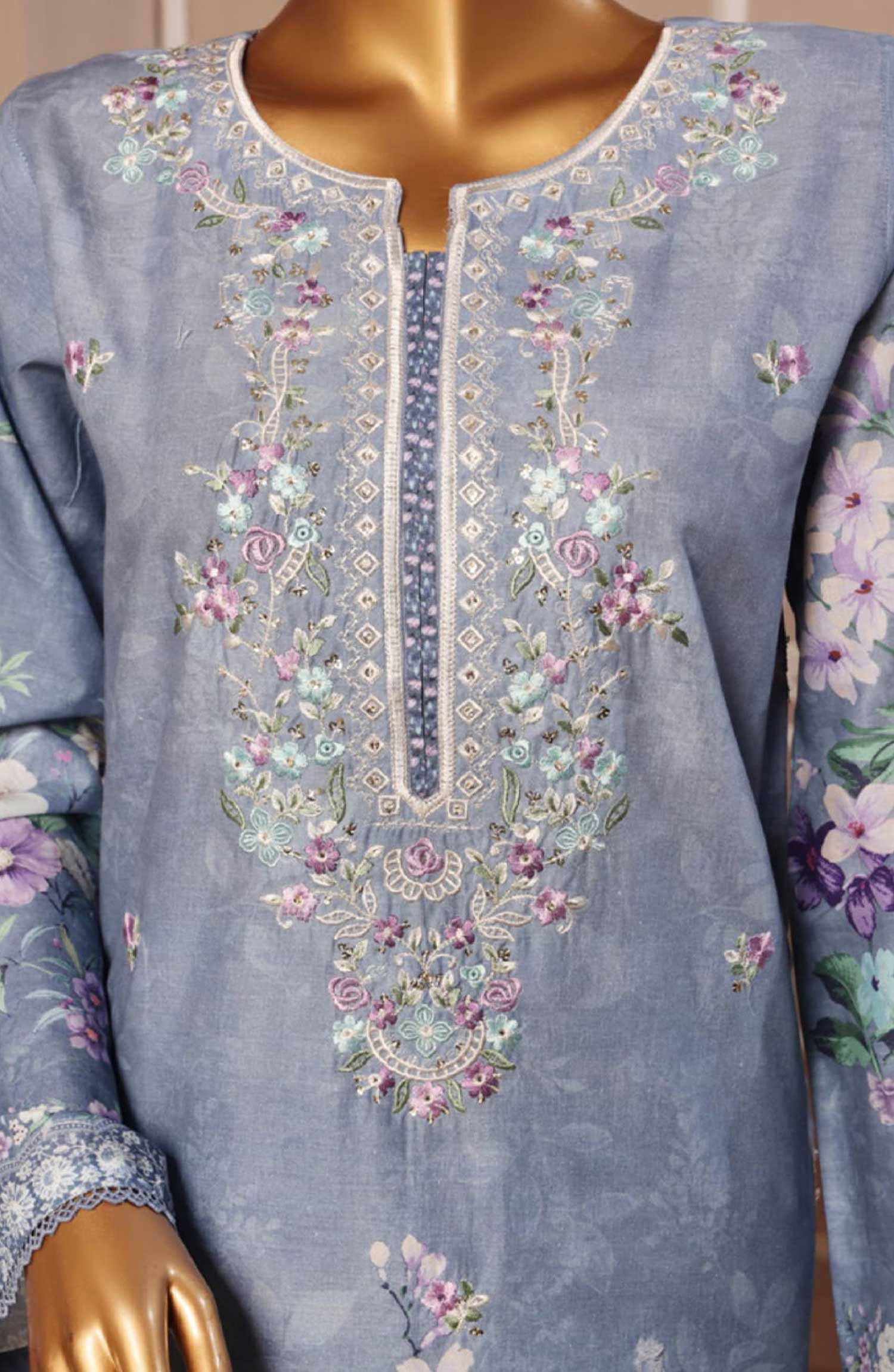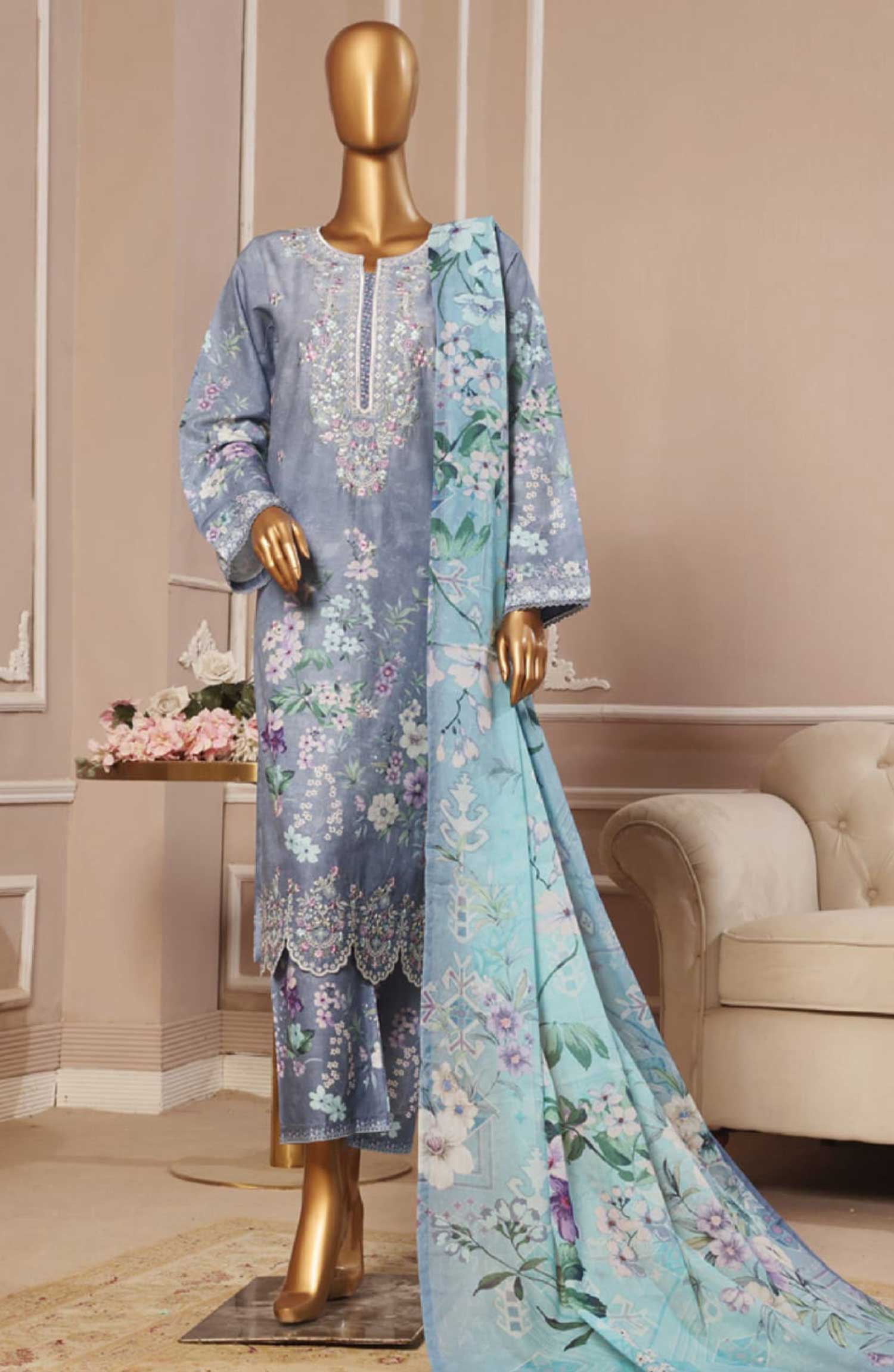 Home Bin Saeed Embroidered Lawn Stitched 3 Piece - SM 026 - BS25EL - Light Blue - Summer Collection