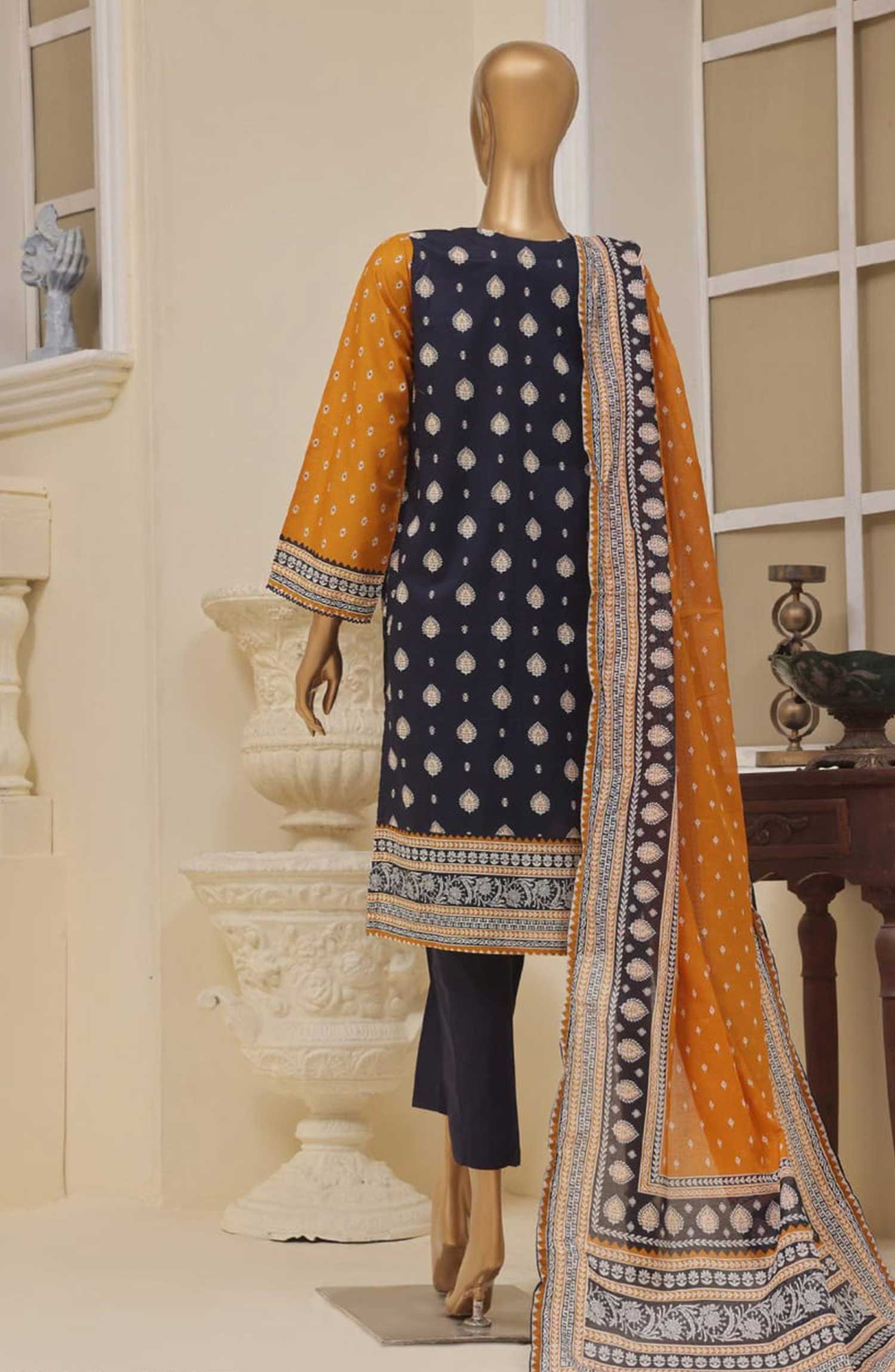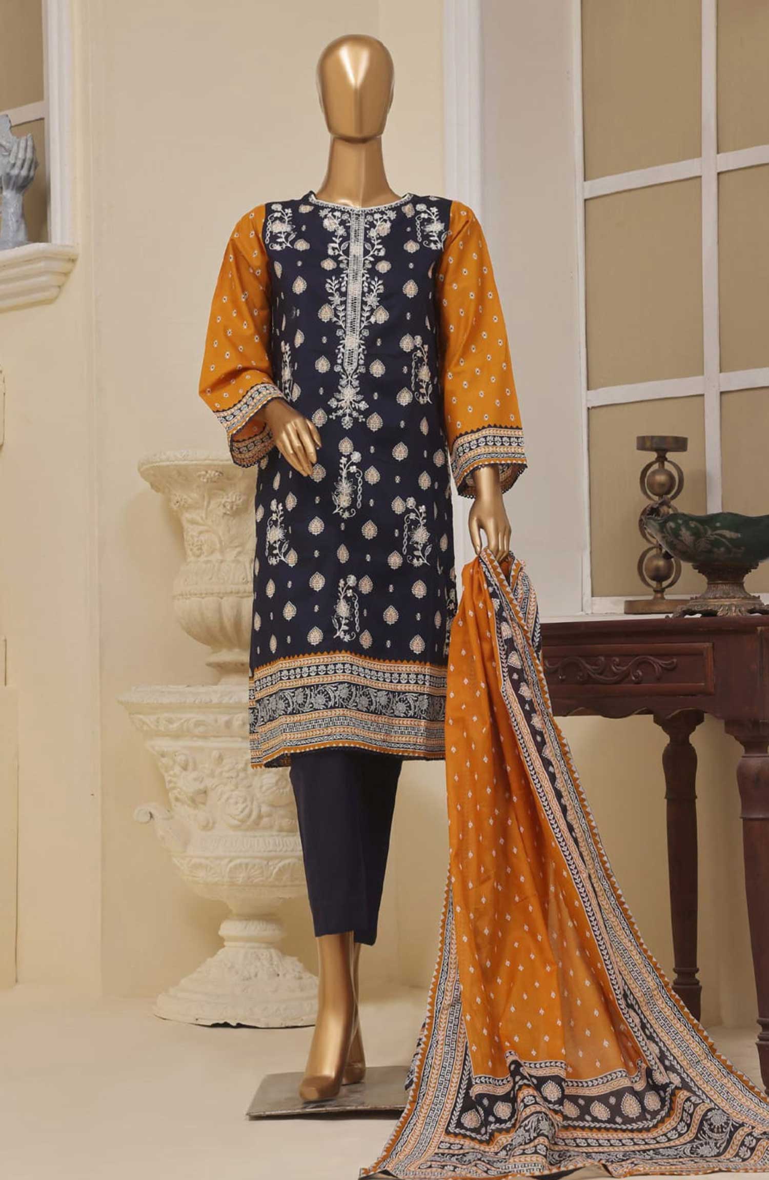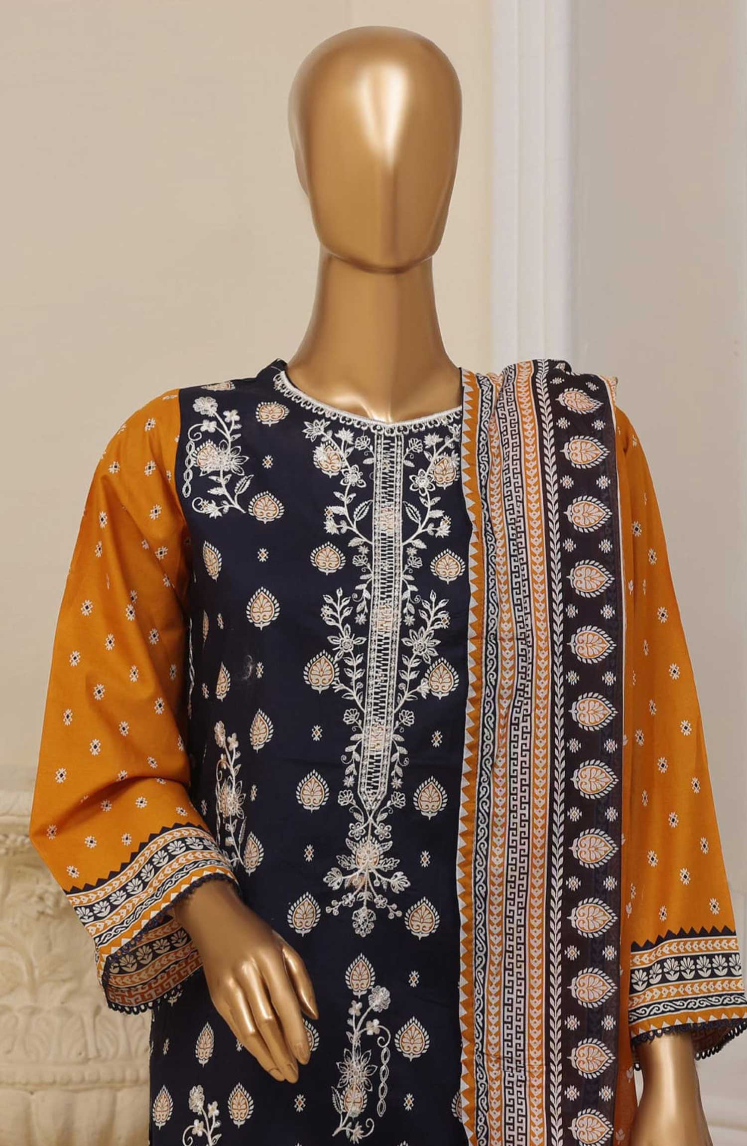 Home Bin Saeed Embroidered Lawn Stitched 3 Piece - SM 037 - BS25EL - Dark Blue - Summer Collection