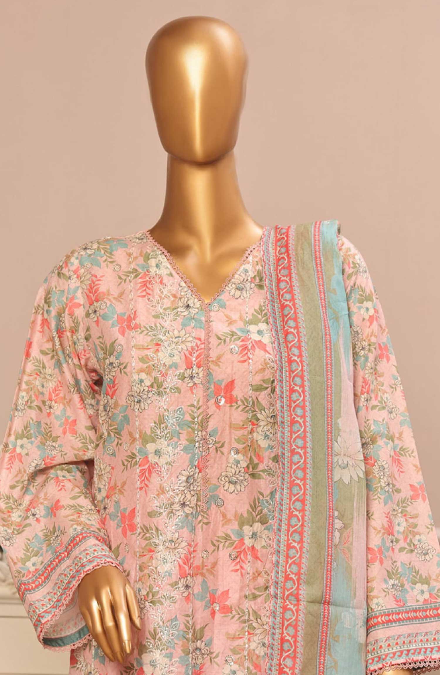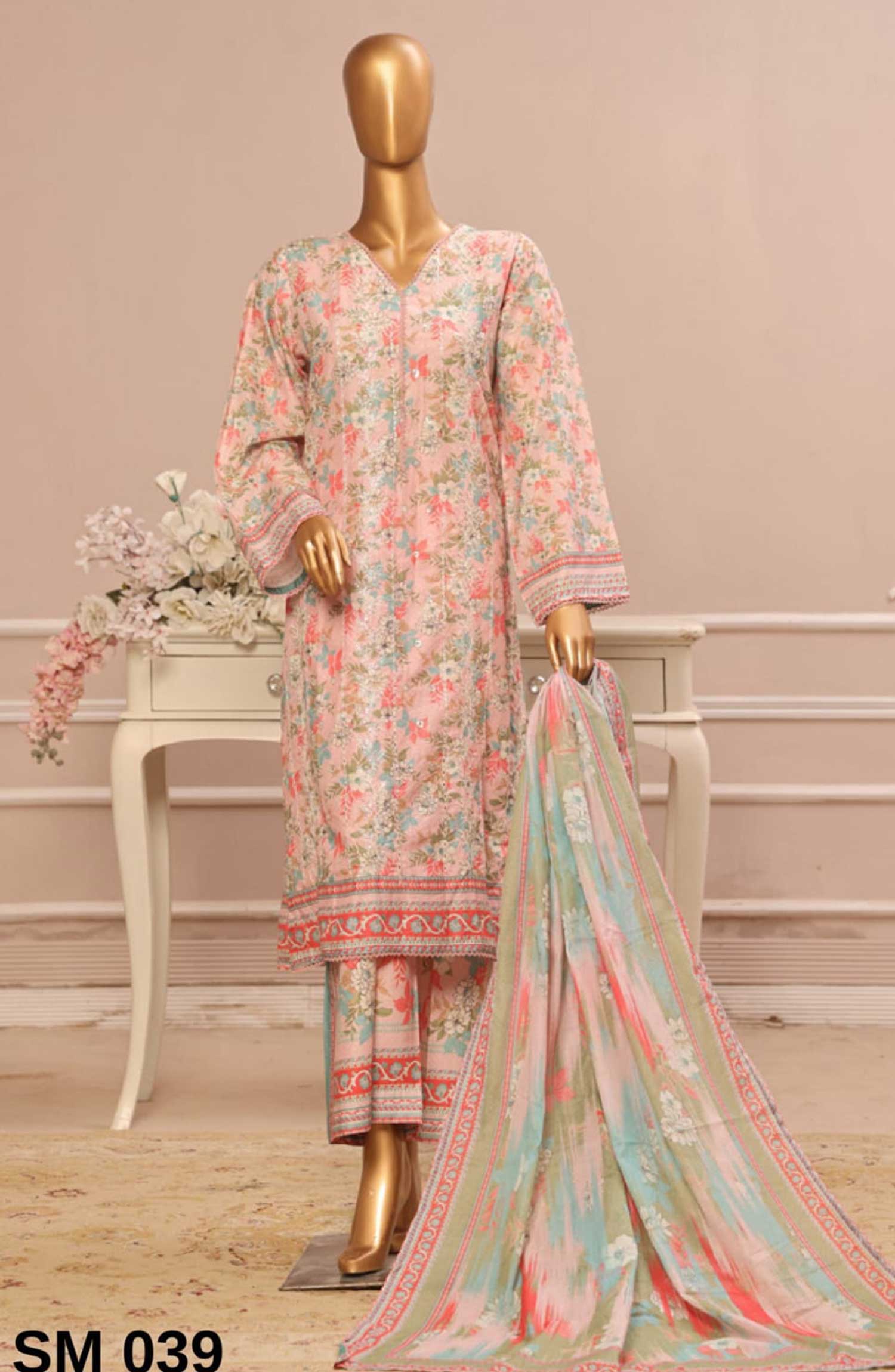 Home Bin Saeed Embroidered Lawn Stitched 3 Piece - SM 039 - BS25SM - Pink - Summer Collection
