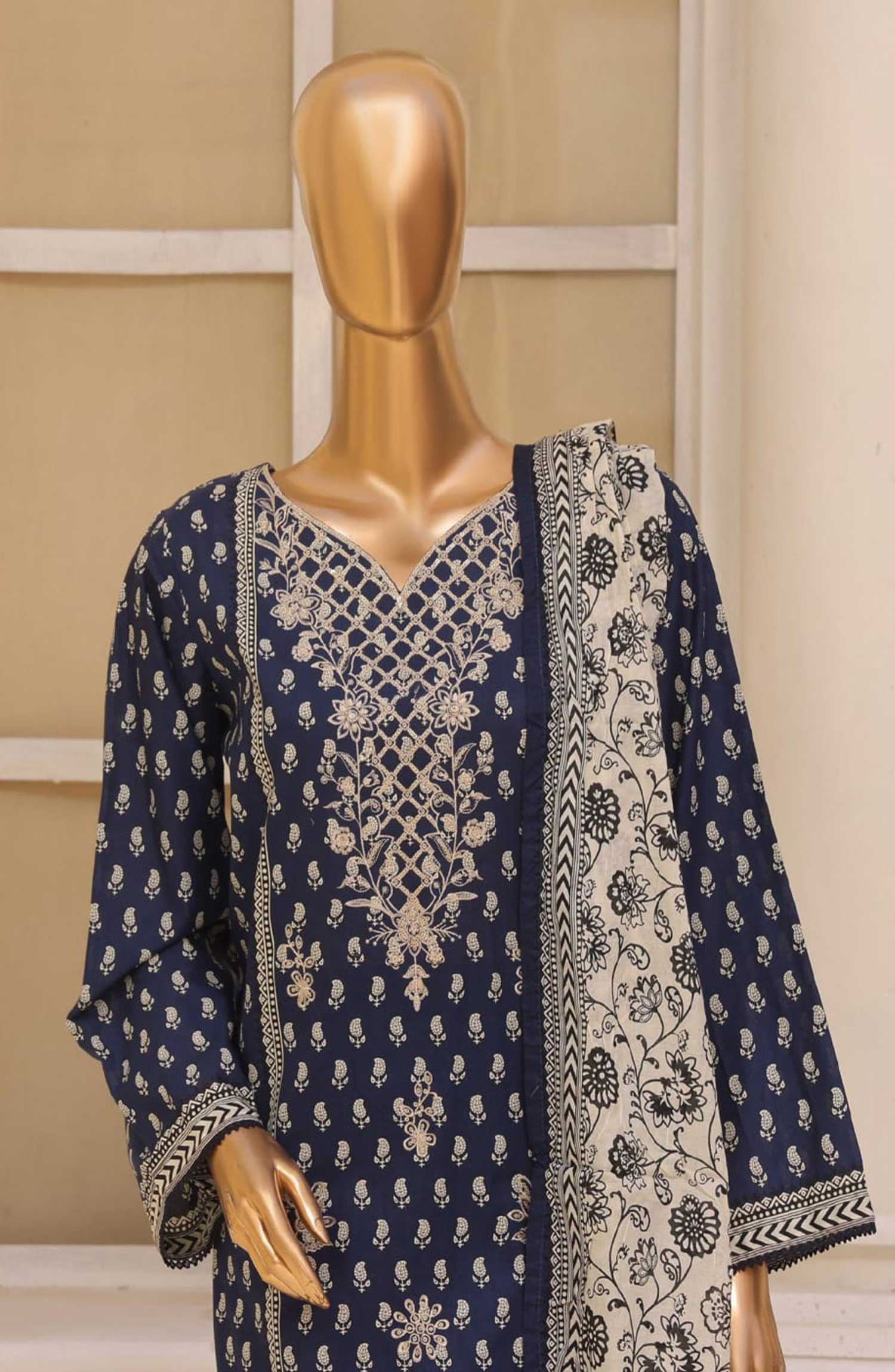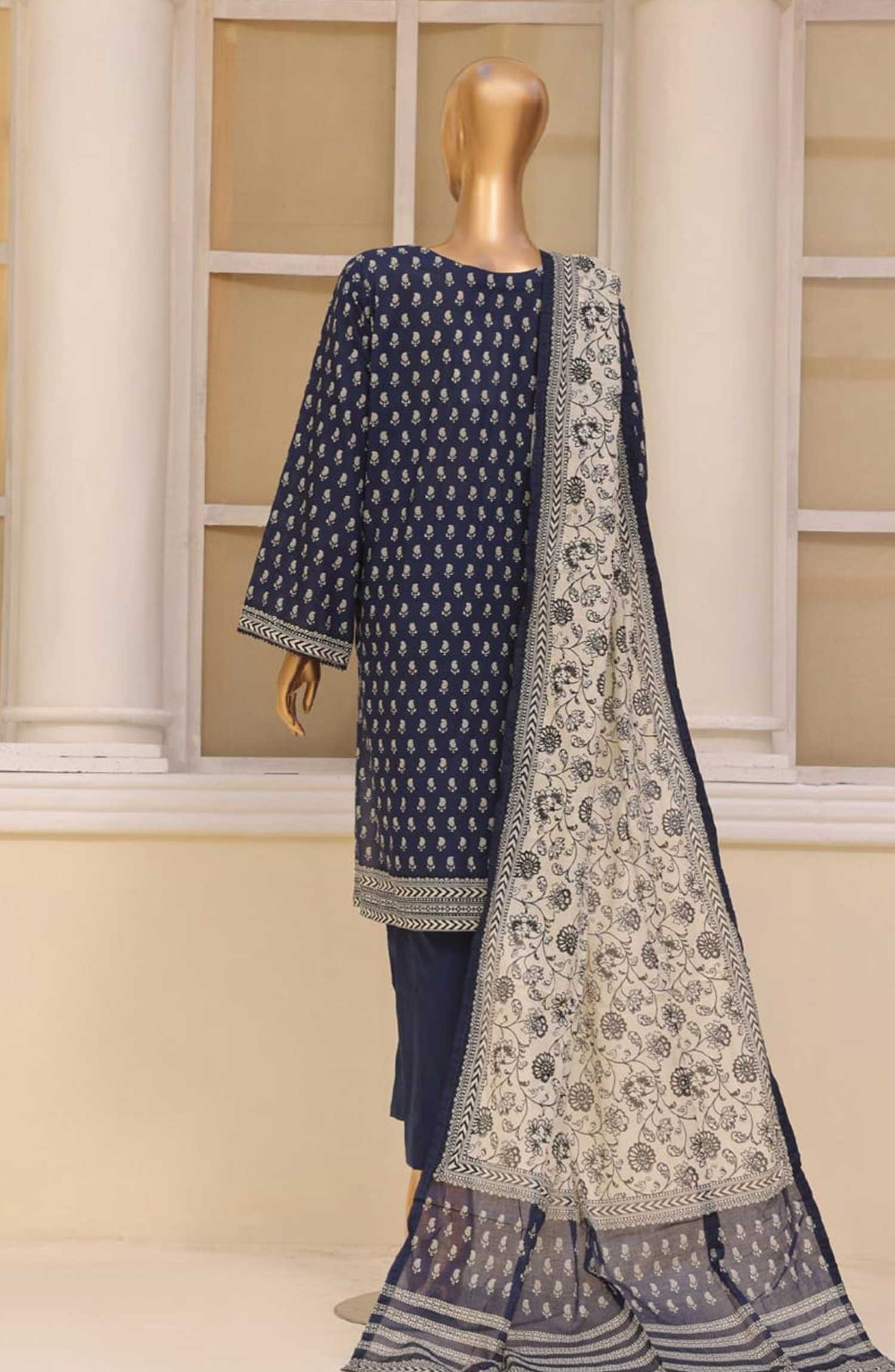 Home Bin Saeed Embroidered Lawn Stitched 3 Piece - SM 048 - BS25EL - Blue - Summer Collection