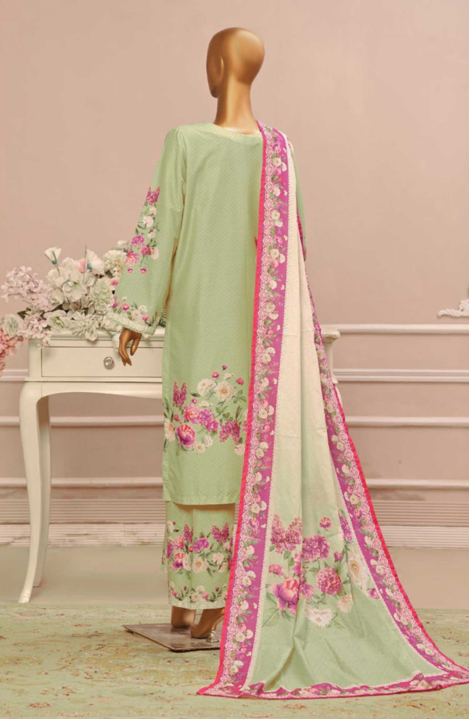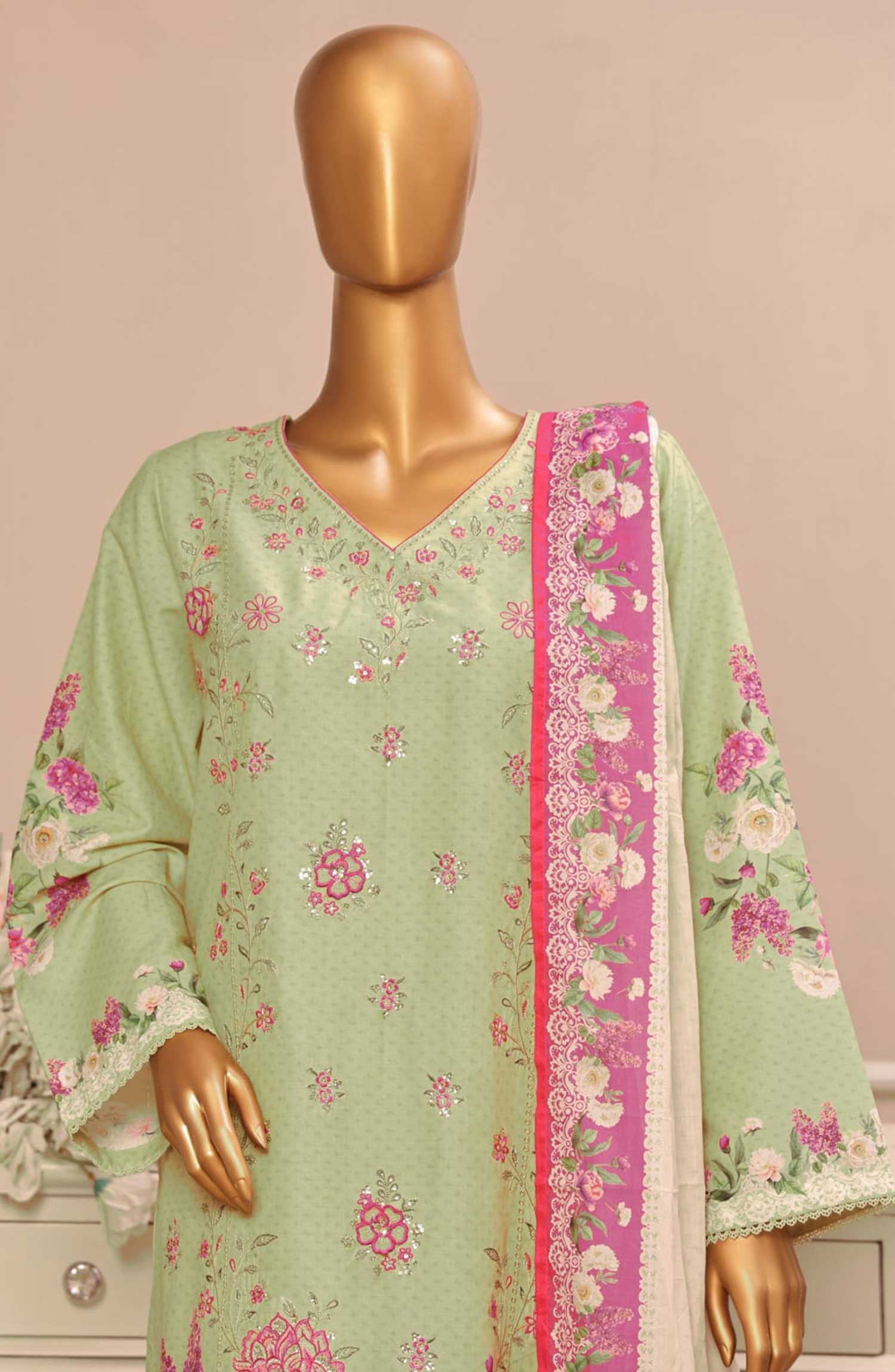 Home Bin Saeed Embroidered Lawn Stitched 3 Piece - SM 29 - BS25SM - Pista Green - Summer Collection