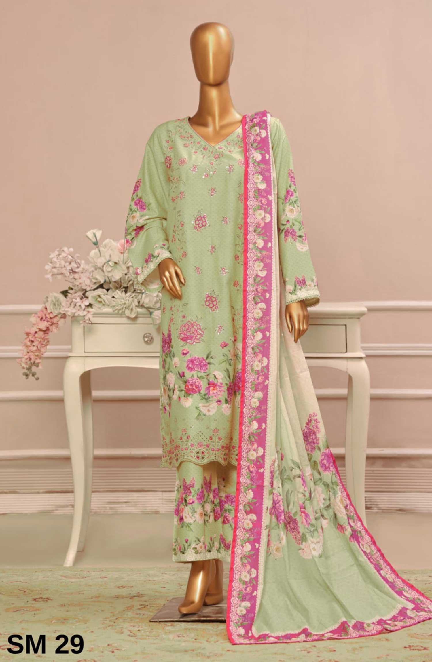 Bin Saeed Embroidered Lawn Stitched 3 Piece - SM 29 - BS25SM - Pista Green - Summer Collection