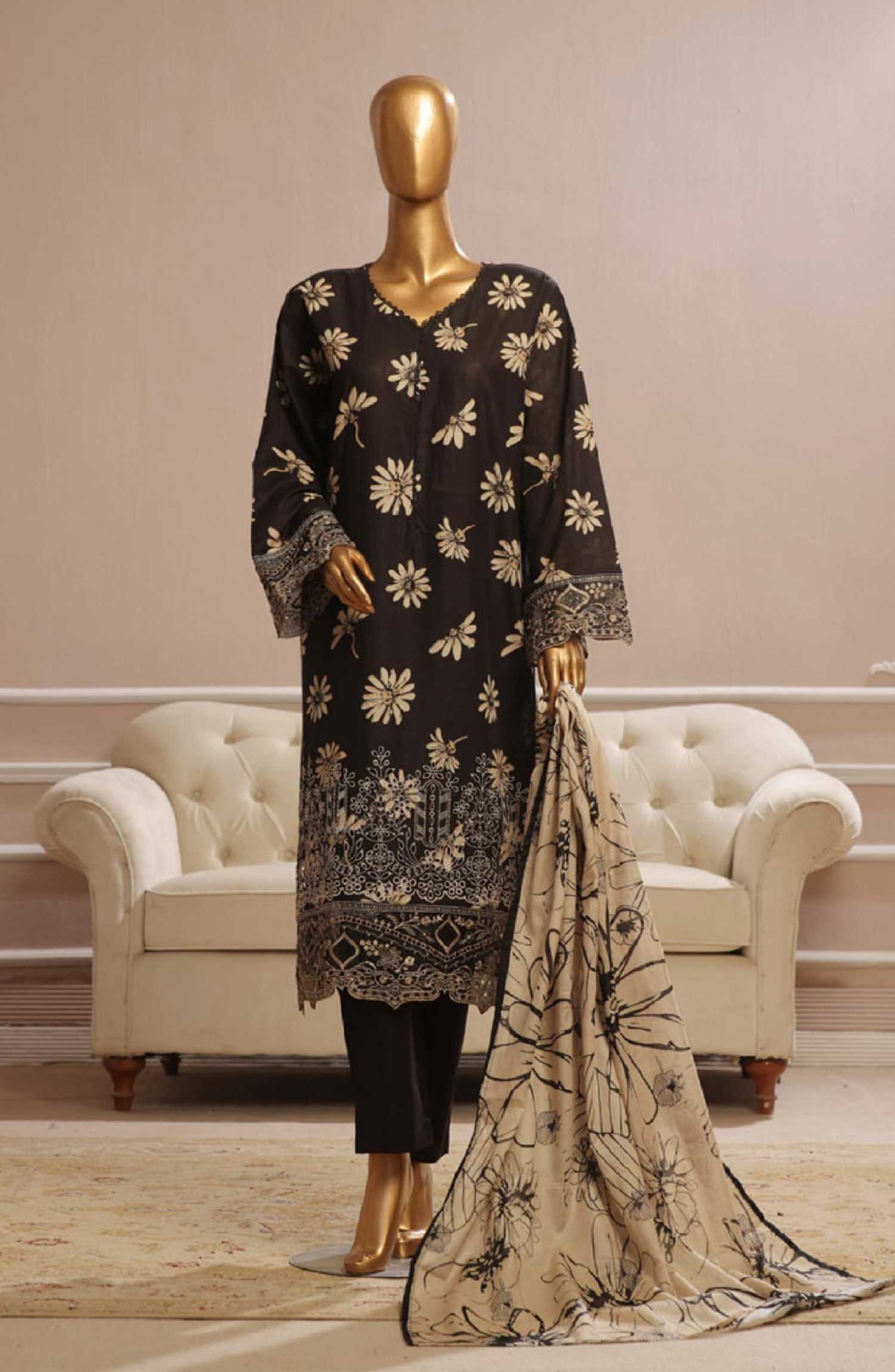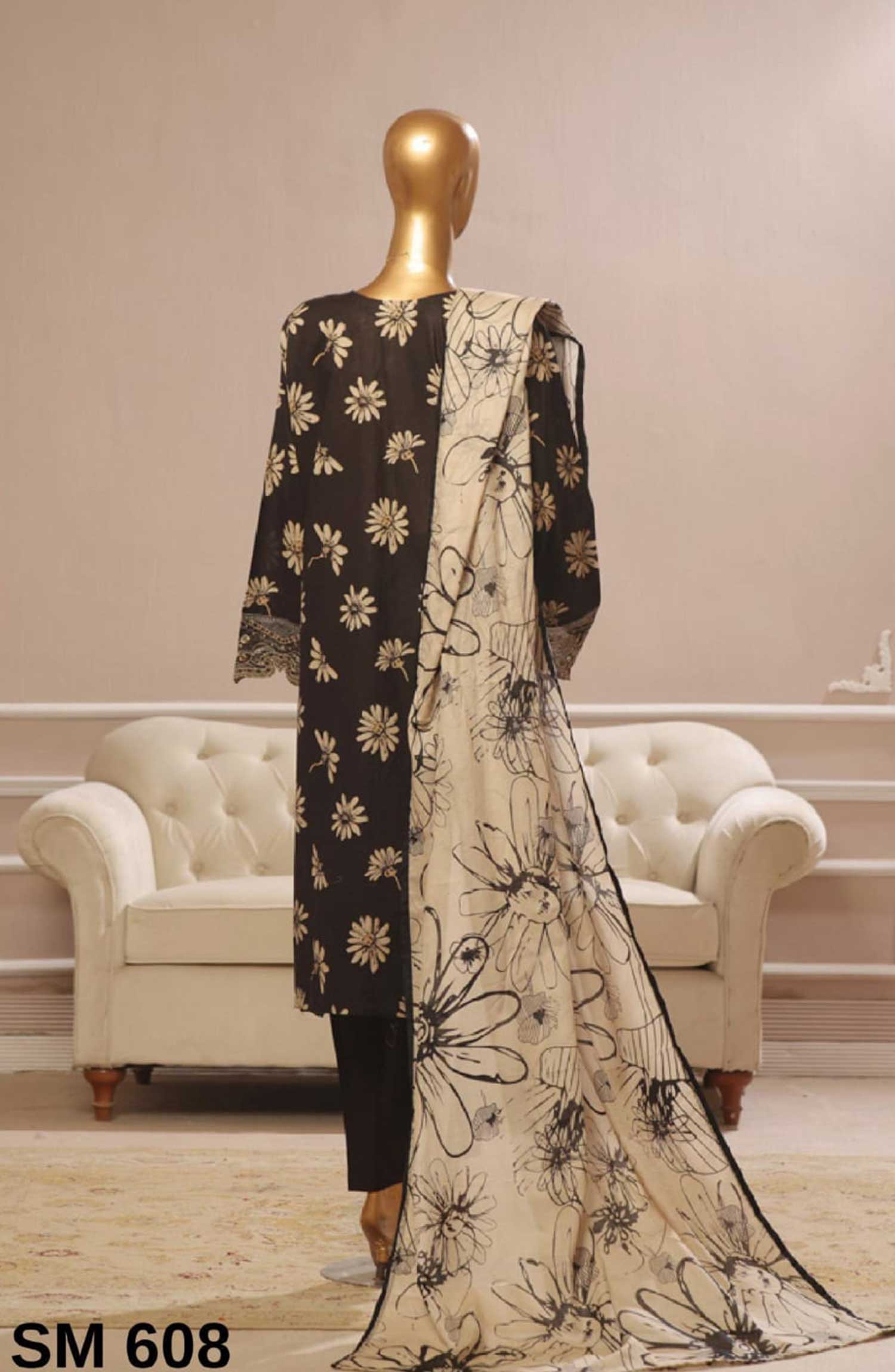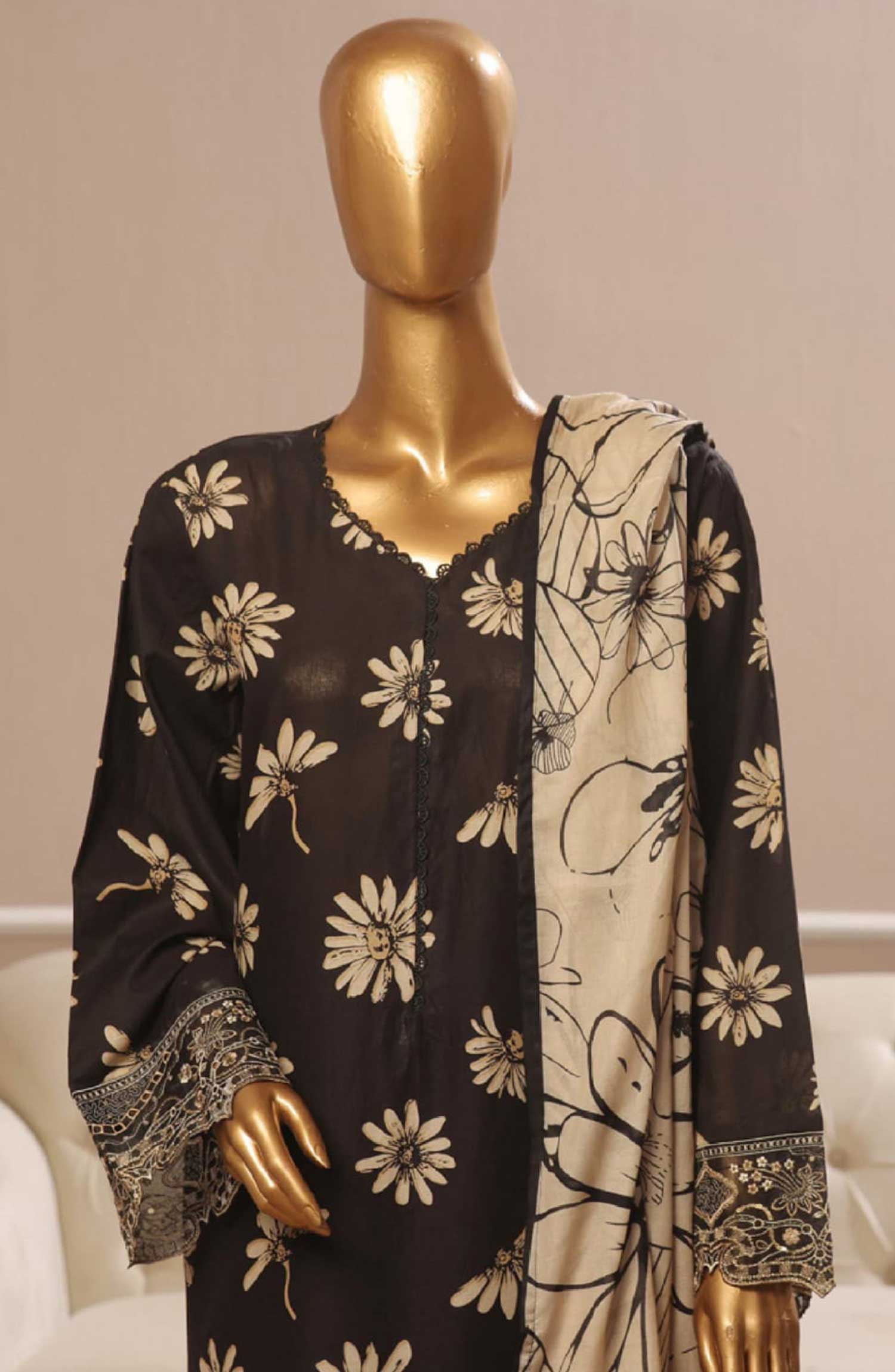 Home Bin Saeed Embroidered Lawn Stitched 3 Piece - SM 608 - BS25SM - Black - Summer Collection