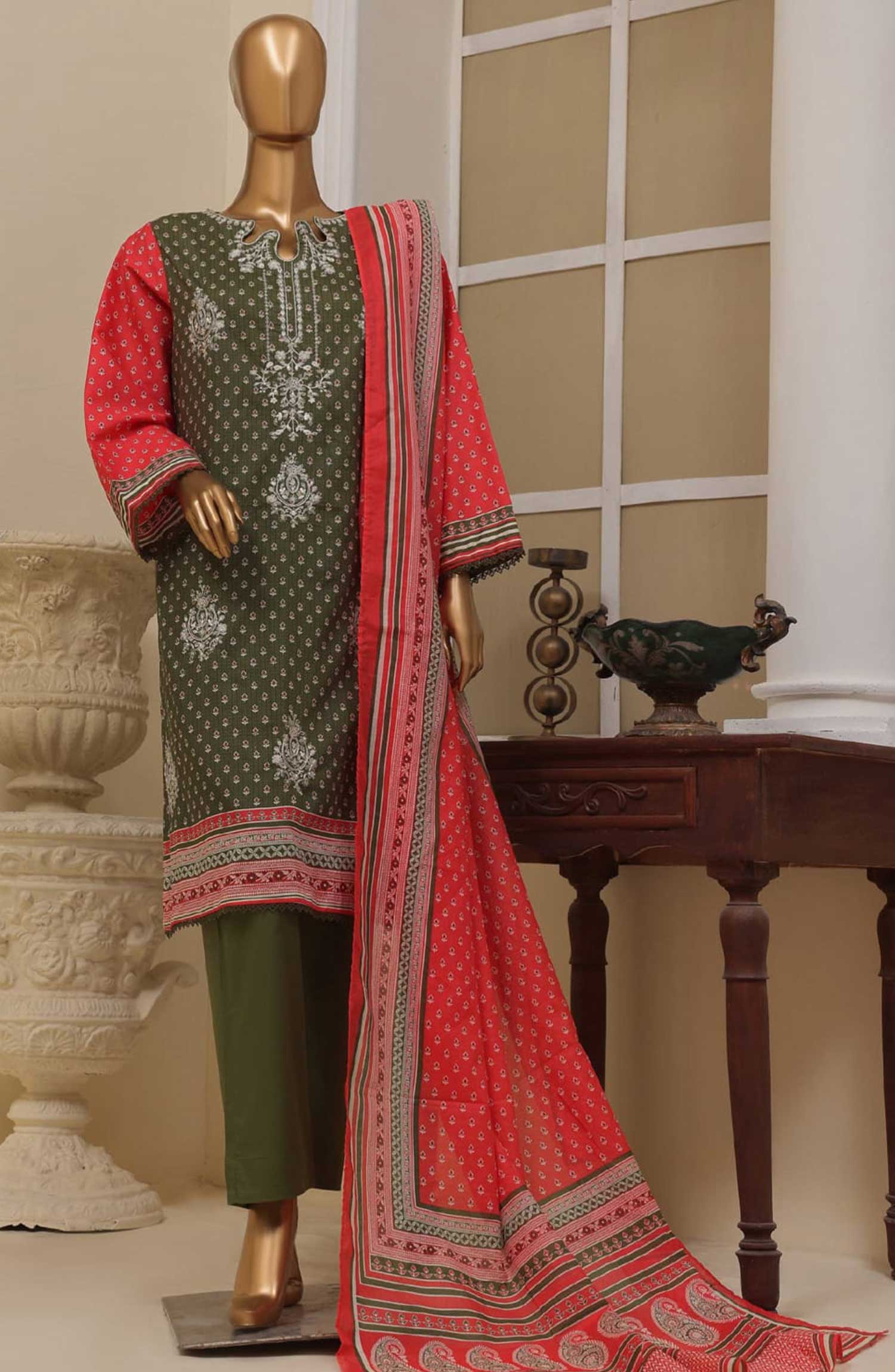 Home Bin Saeed Embroidered Lawn Stitched 3 Piece - SM 753 - BS25EL - Green - Summer Collection