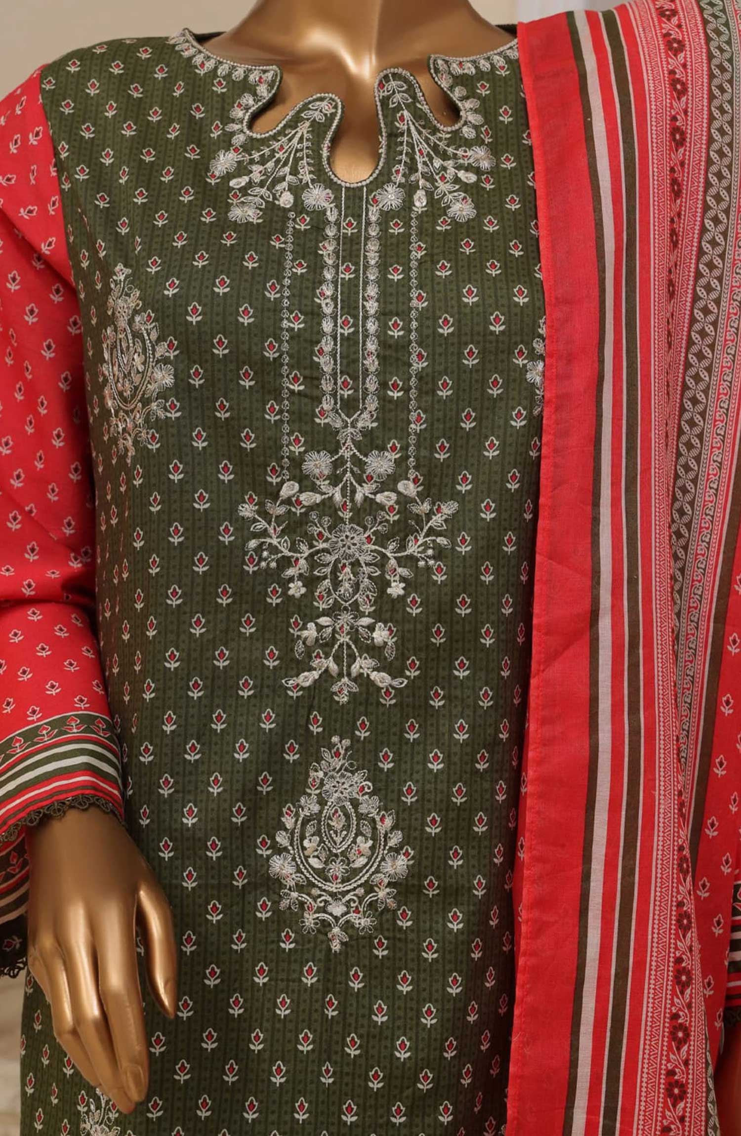 Bin Saeed Embroidered Lawn Stitched 3 Piece - SM 753 - BS25EL - Green - Summer Collection